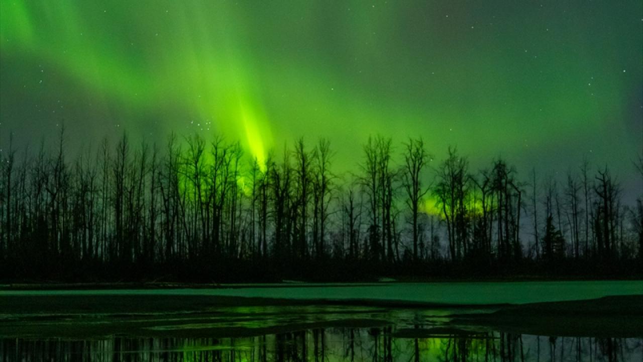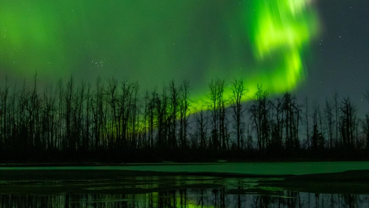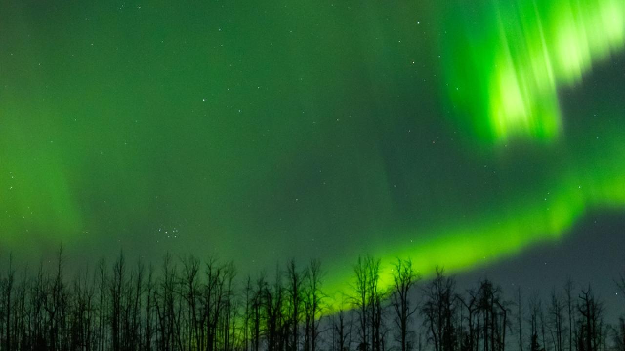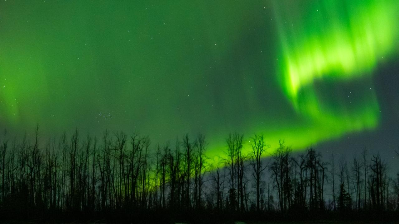 Yeryüzünün manyetik alanı ile Güneş'ten gelen yüklü parçacıkların etkileşimi sonucu ortaya çıkan Kuzey Işıkları (Aurora Borealis), ABD'nin kuzeyindeki Alaska Eyaleti'ne bağlı Fairbanks şehrinde görüntülendi.