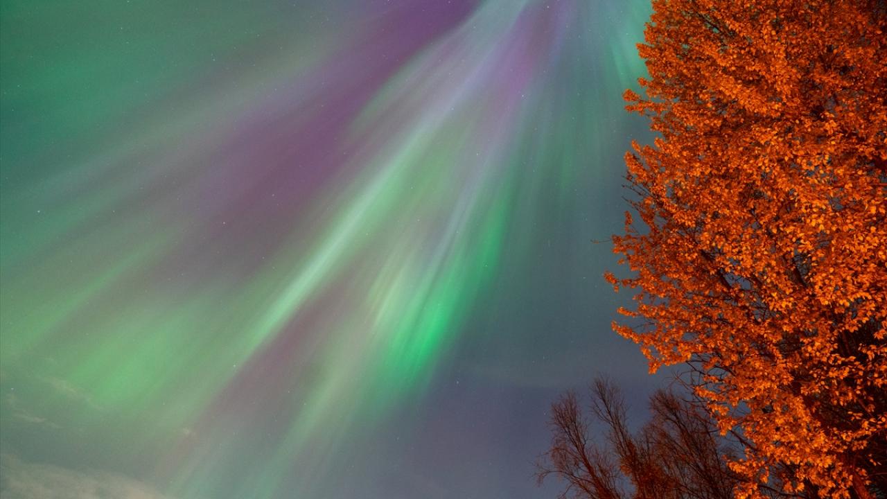 ABD’nin Alaska eyaletinde sonbahar mevsimi gecelerini, kuzey ışıkları farklı renk tonlarıyla aydınlatıyor.