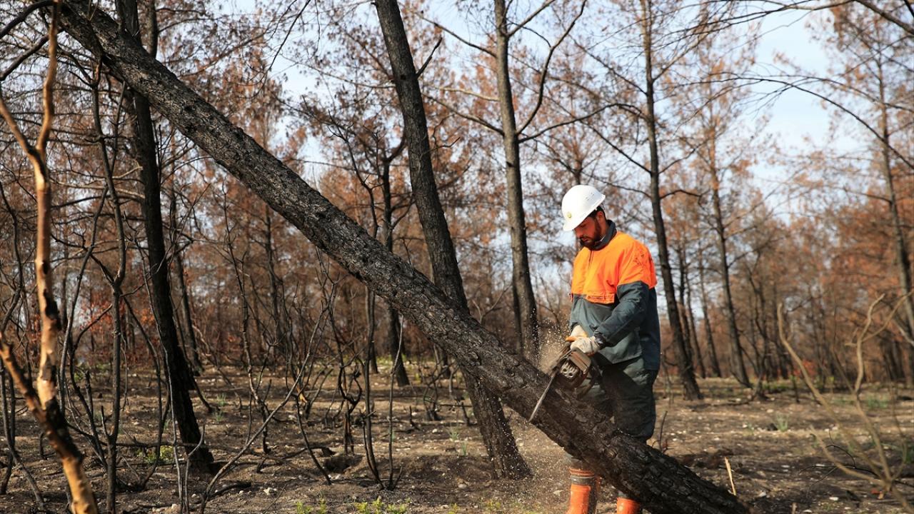 Manisa Orman İşletme Müdürlüğü ekiplerinin çalışmalarını yoğunlaştırdığı bölgelerden biri de temmuz ayındaki yangında büyük zarar gören Saruhanlı ilçesine bağlı Bahadır Mahallesi yakınındaki 255 hektarlık alan oldu. Orman işçileri, öncelikle alandaki tahribatı belirledi. Yanmış ve tomruk olarak değerlendirilebilecek ağaçlar kesilerek bölgeden uzaklaştırıldı. Temizlik çalışmasının ardından yanan sahalar iş makineleriyle yeniden düzenlenerek çalışılabilir hale getirildi.