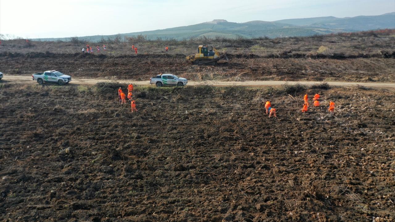 Toprağın üst kısmını temizleyen ekipler, ardından zemini işleyen orman ekipleri, fidanları dikime hazır hale getiriyor.