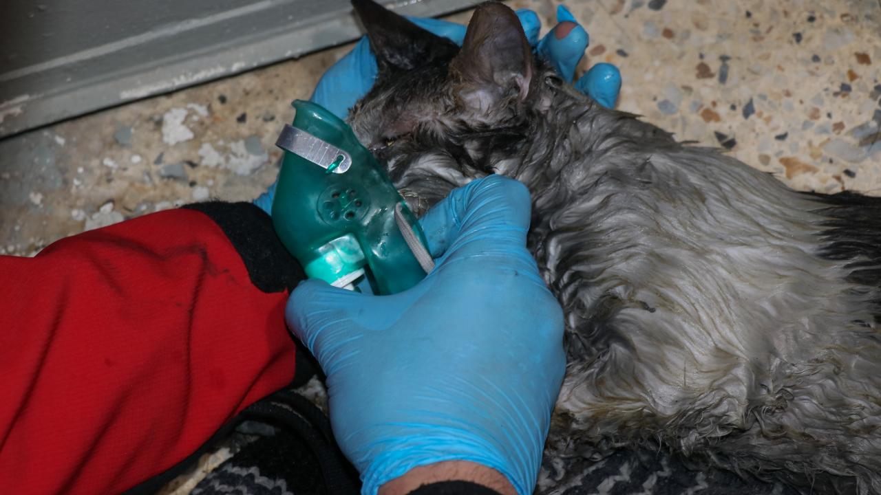 Yangında dumandan etkilenen ve vücudunda yanıklar oluşan Minnoş`a İzmir itfaiyesi paramedikleri, olay yerinde 1 saat boyunca oksijen tedavisi uyguladı.