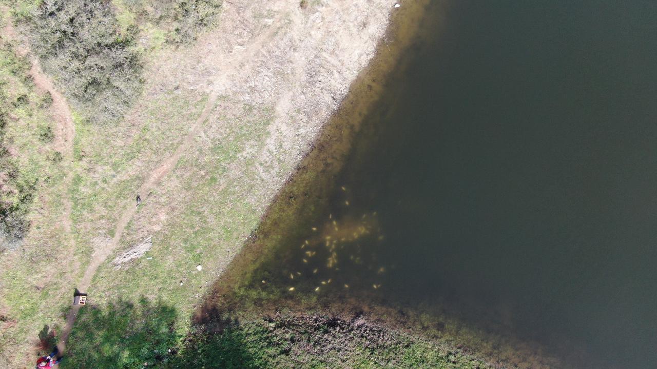 Çok sayıda ölü balığın suyun yüzüne çıktığını ve çevrede de ölmüş karabatak kuşlarının olduğunu gören vatandaşlar, balık tutmadan evlerine döndü.