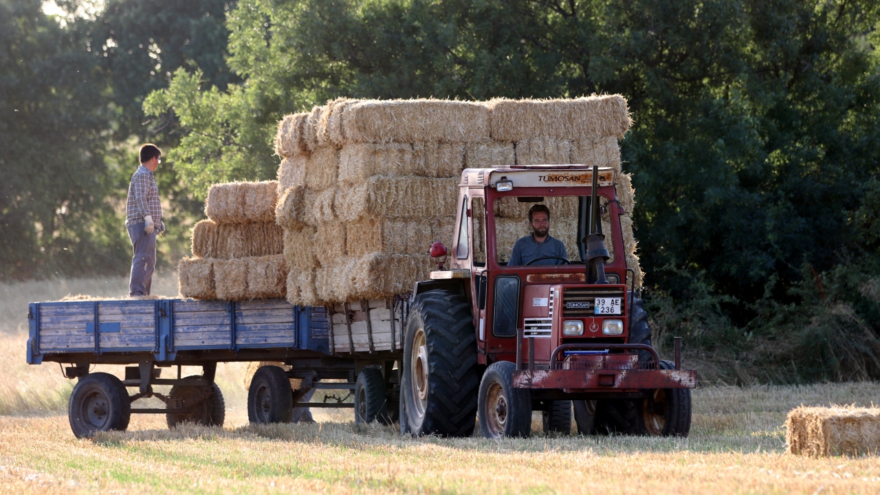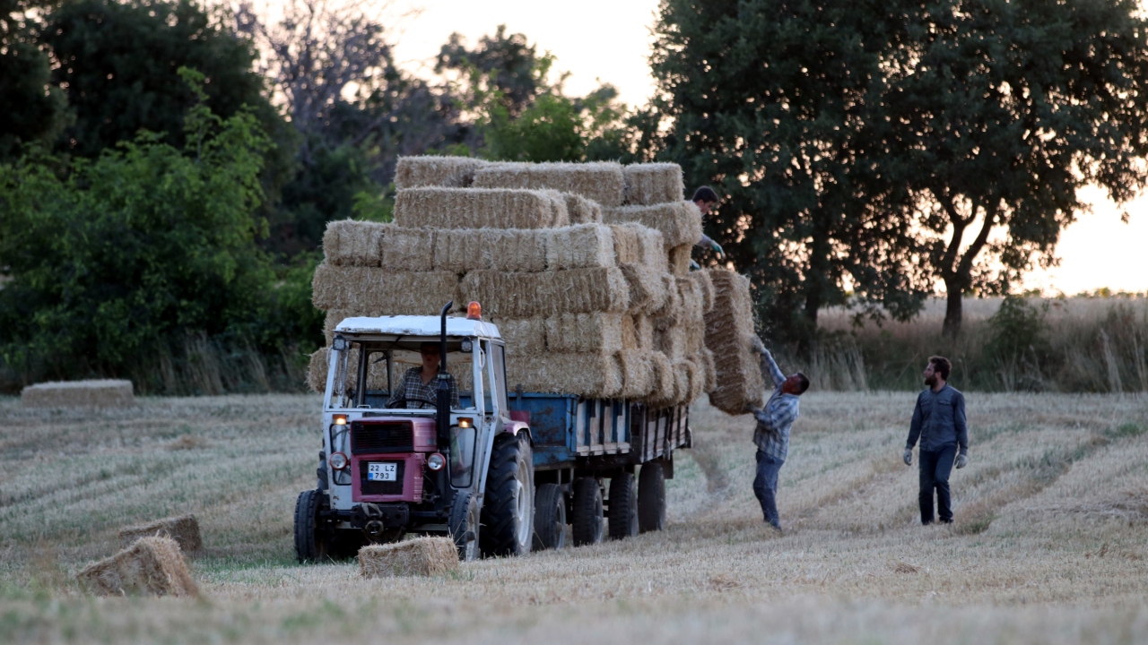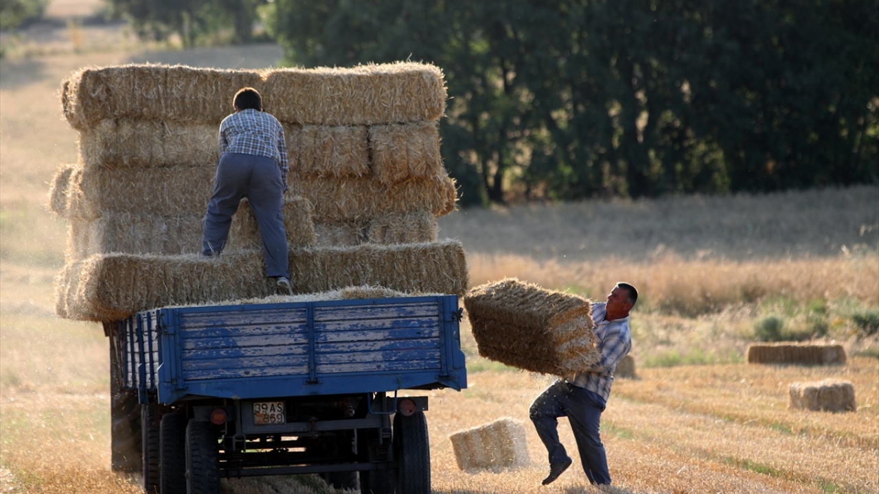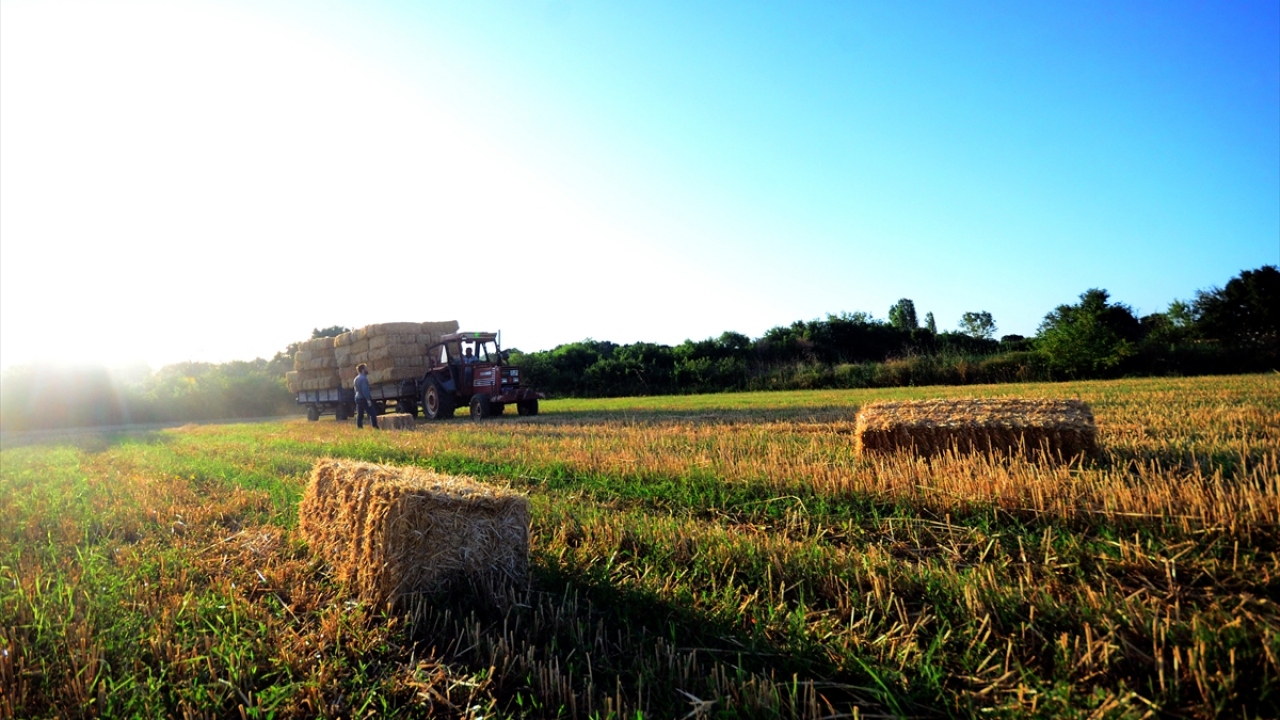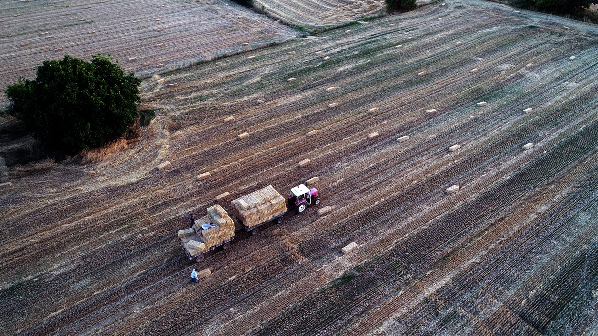 Türkiye`nin önemli tahıl üretim merkezlerinden Trakya`da, buğday tarlalarındaki hasat mesaisi, yerini saman balyası taşıma işine bıraktı.