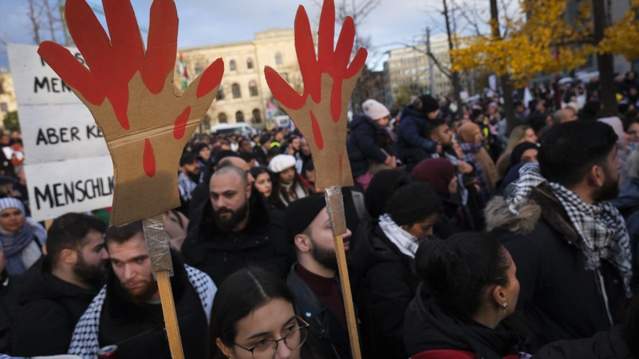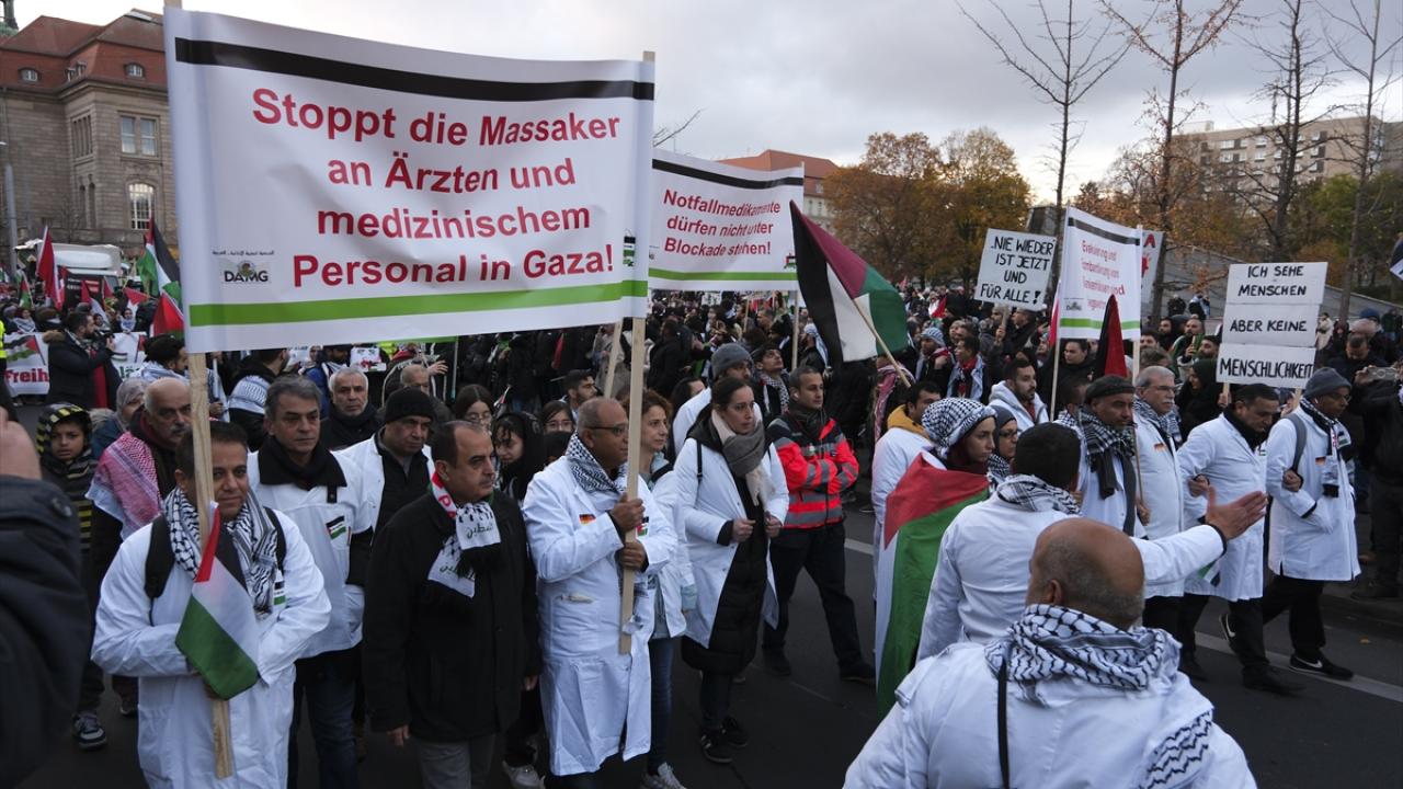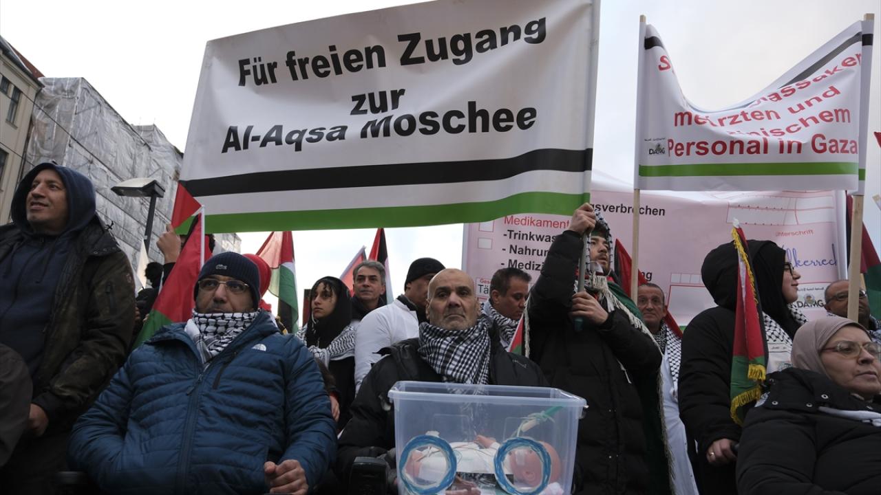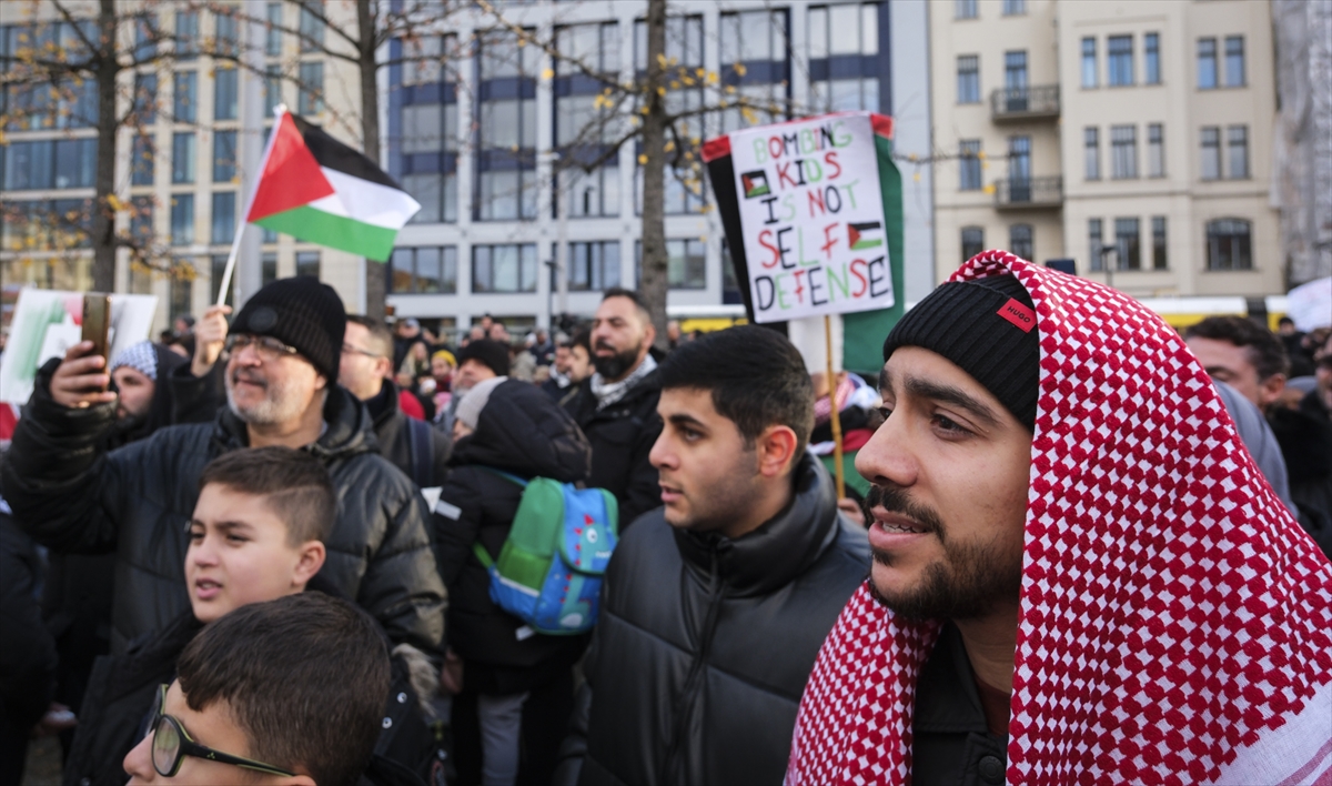 Şehir merkezindeki Invalidenpark`ta toplanan binlerce kişi, İsrail`in Gazze`ye yönelik saldırılarını protesto ederek saldırıların durdurulması çağrısında bulundu.