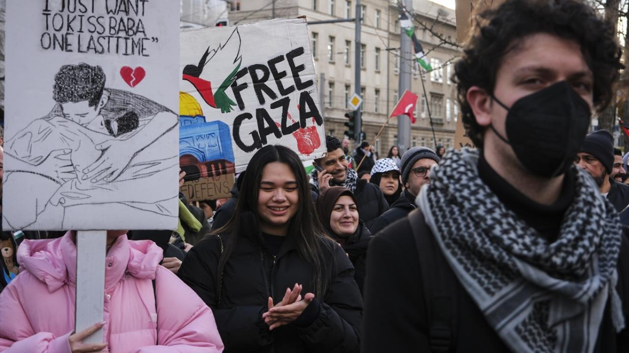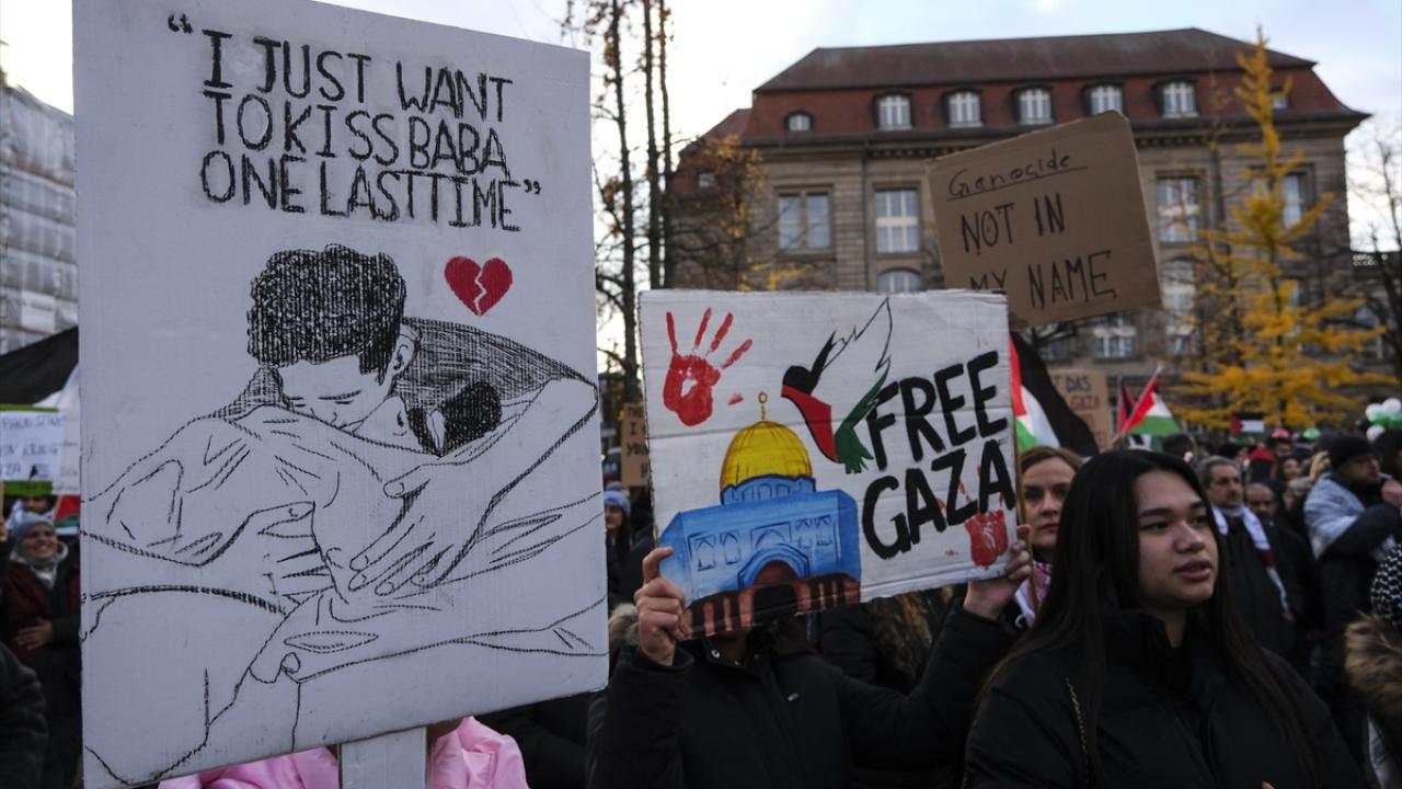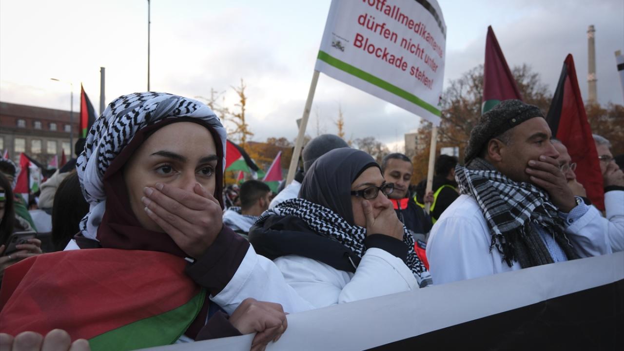 Şehir merkezindeki Invalidenpark`ta toplanan binlerce kişi, İsrail`in Gazze`ye yönelik saldırılarını protesto ederek saldırıların durdurulması çağrısında bulundu.