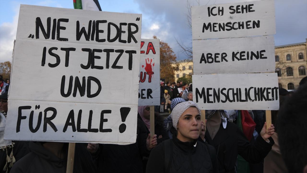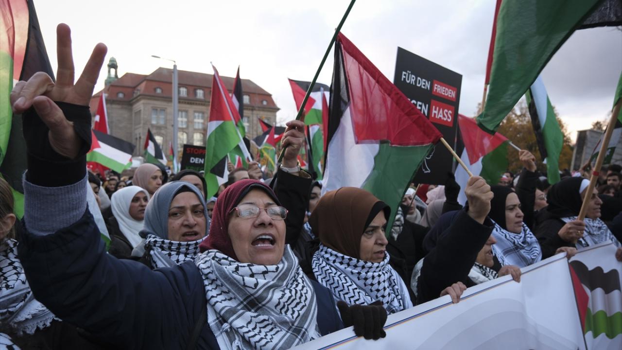 Almanya’nın başkenti Berlin’de Filistin’e destek gösterisi düzenlendi. Şehir merkezindeki Invalidenpark’ta toplanan binlerce kişi İsrail’in Gazze'ye yönelik saldırılarını protesto etmek ve saldırıların durdurulması için toplandı.