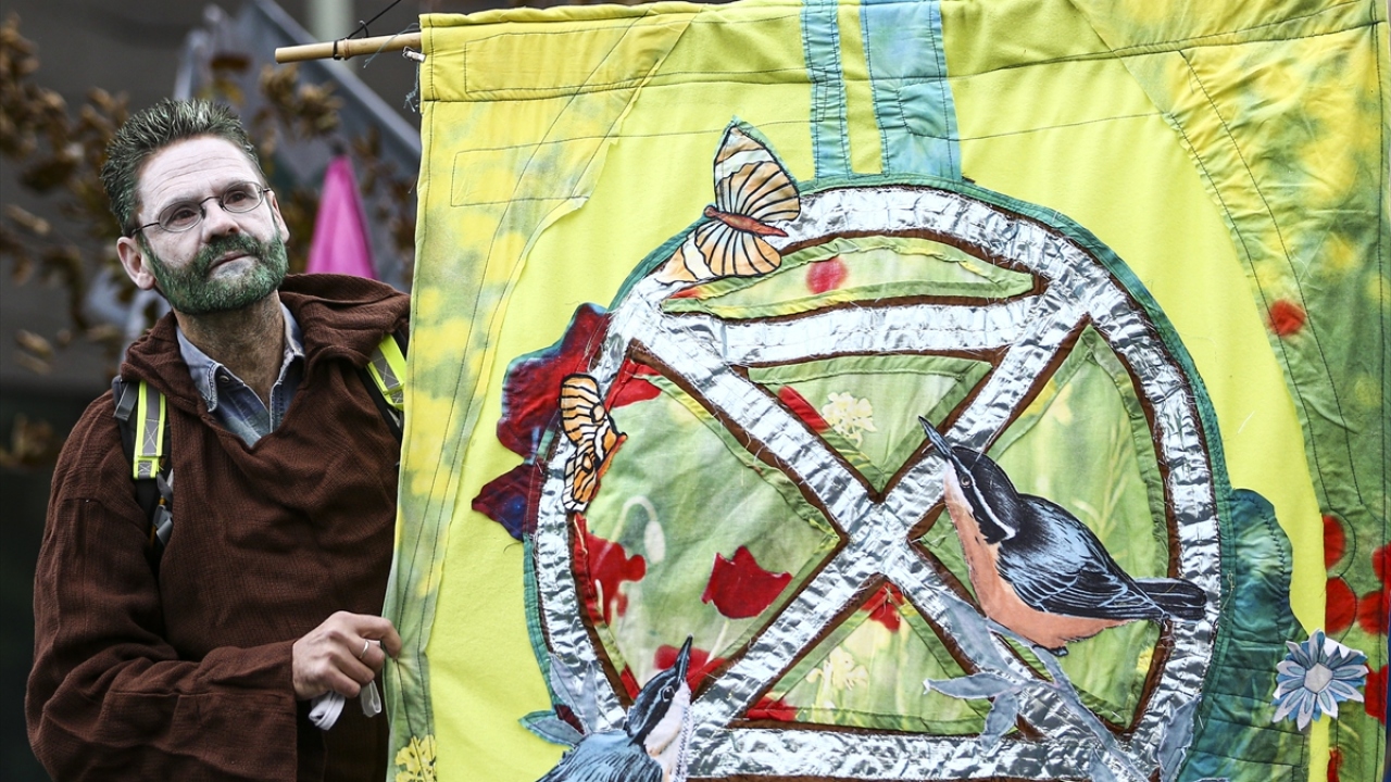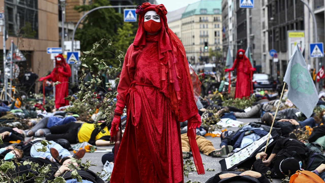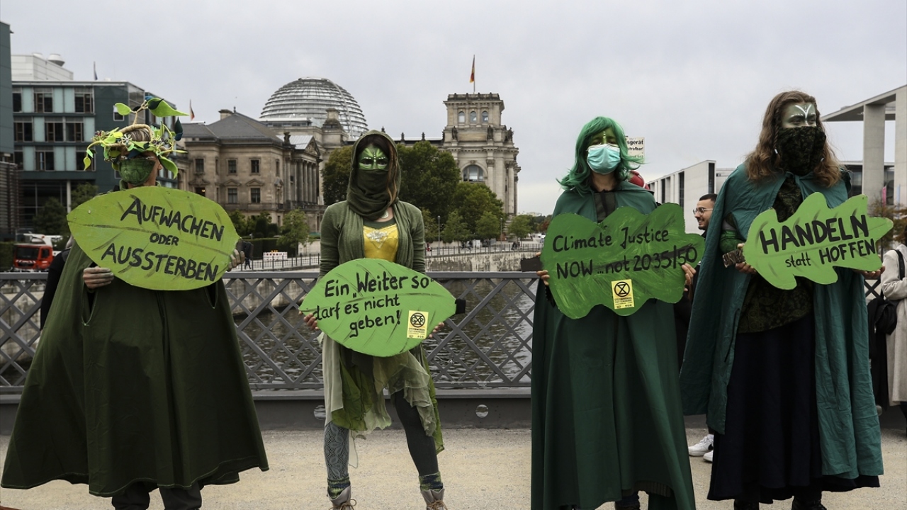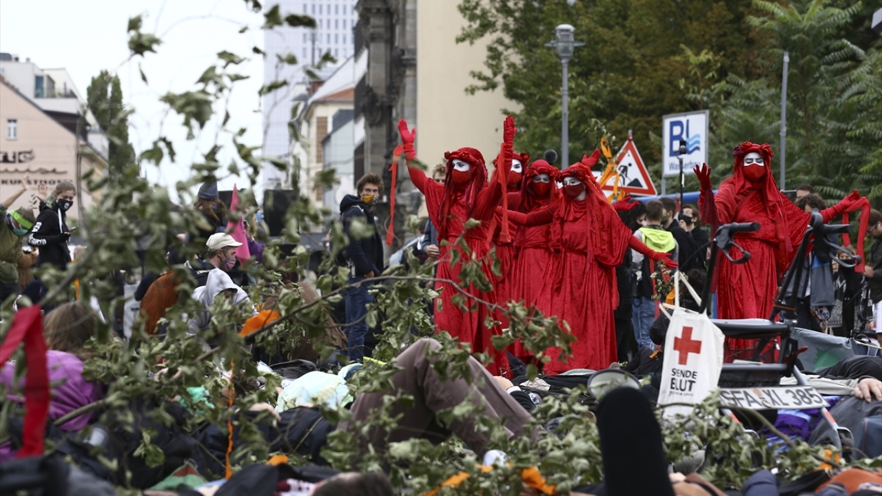Almanya’nın başkenti Berlin’de çevreci grup Extinction Rebellion (Yokoluş İsyanı) üyeleri, otoyol için ormanların kesilmesini protesto etmek amacıyla gösteri düzenledi.