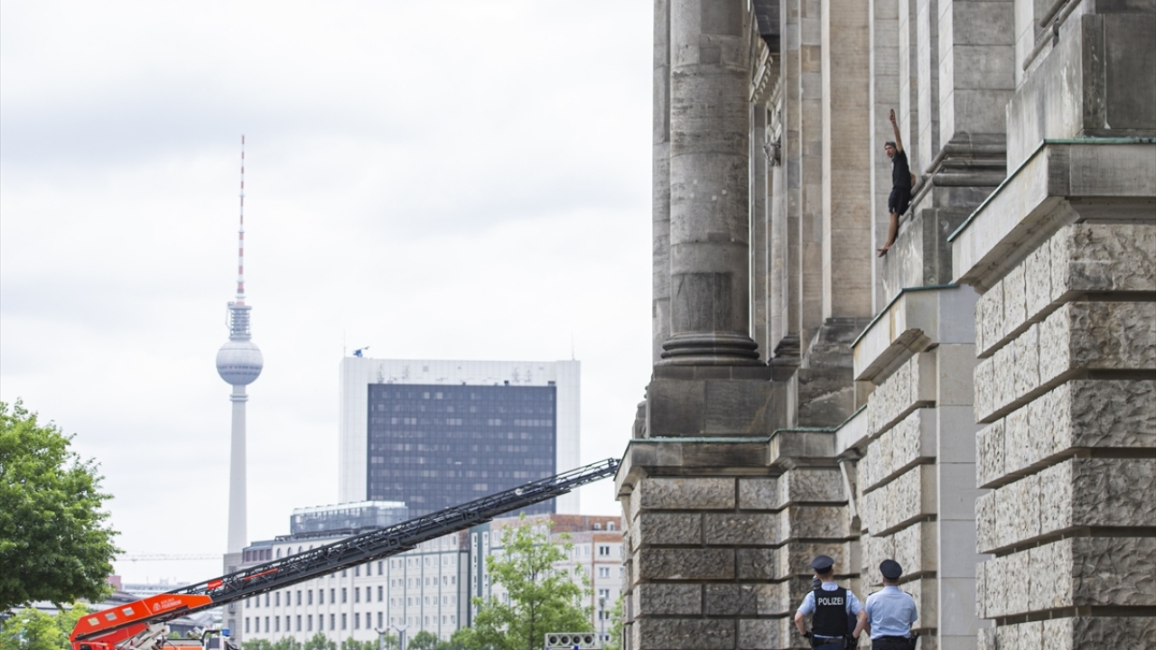 Almanya’nın başkenti Berlin’de Federal Meclis’in duvarına tırmanın bir kişi polisi alarma geçirdi. Kimliği belirlenmeyen kişi Federal Meclis’in kuzey girişi tarafında binanın duvarına tırmandı.