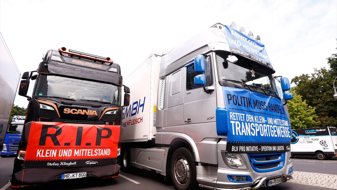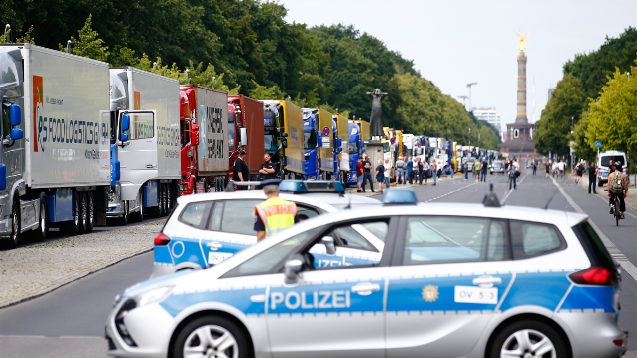 Almanya'daki kamyoncular, düşük nakliyat fiyatlarını protesto etti