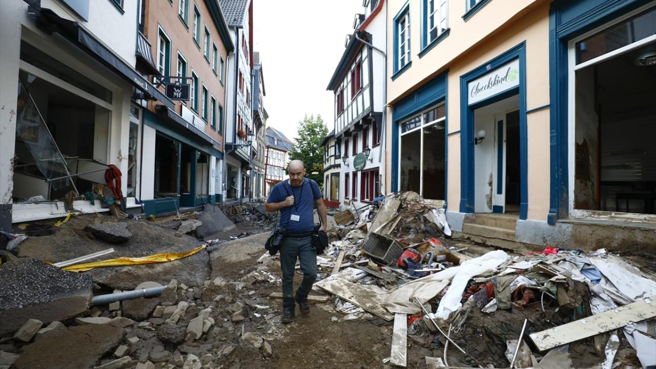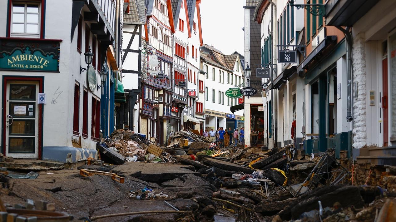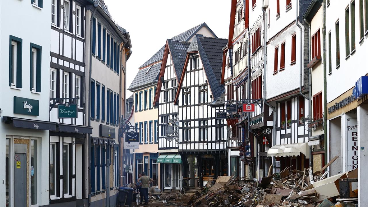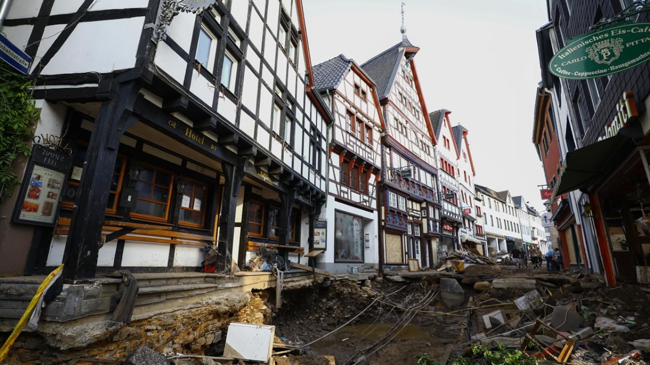 Almanya'nın batısındaki Rheinland-Pfalz ve Kuzey-Ren Vestfalya eyaletlerinde selden en çok etkilenen şehirlerden biri olan Bad Münstereifel şehri havadan görüntülendi. Kentteki tahribat gözler önüne serildi.