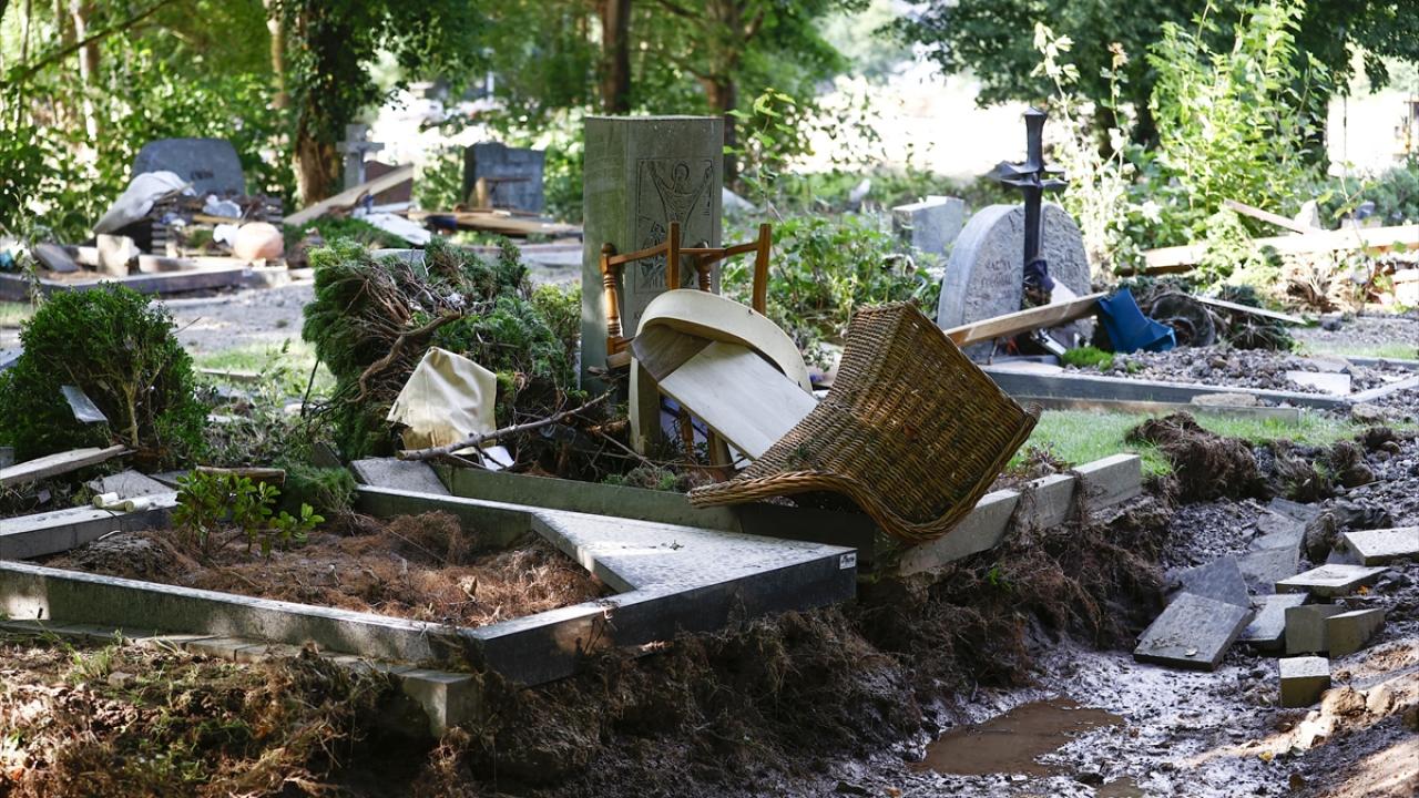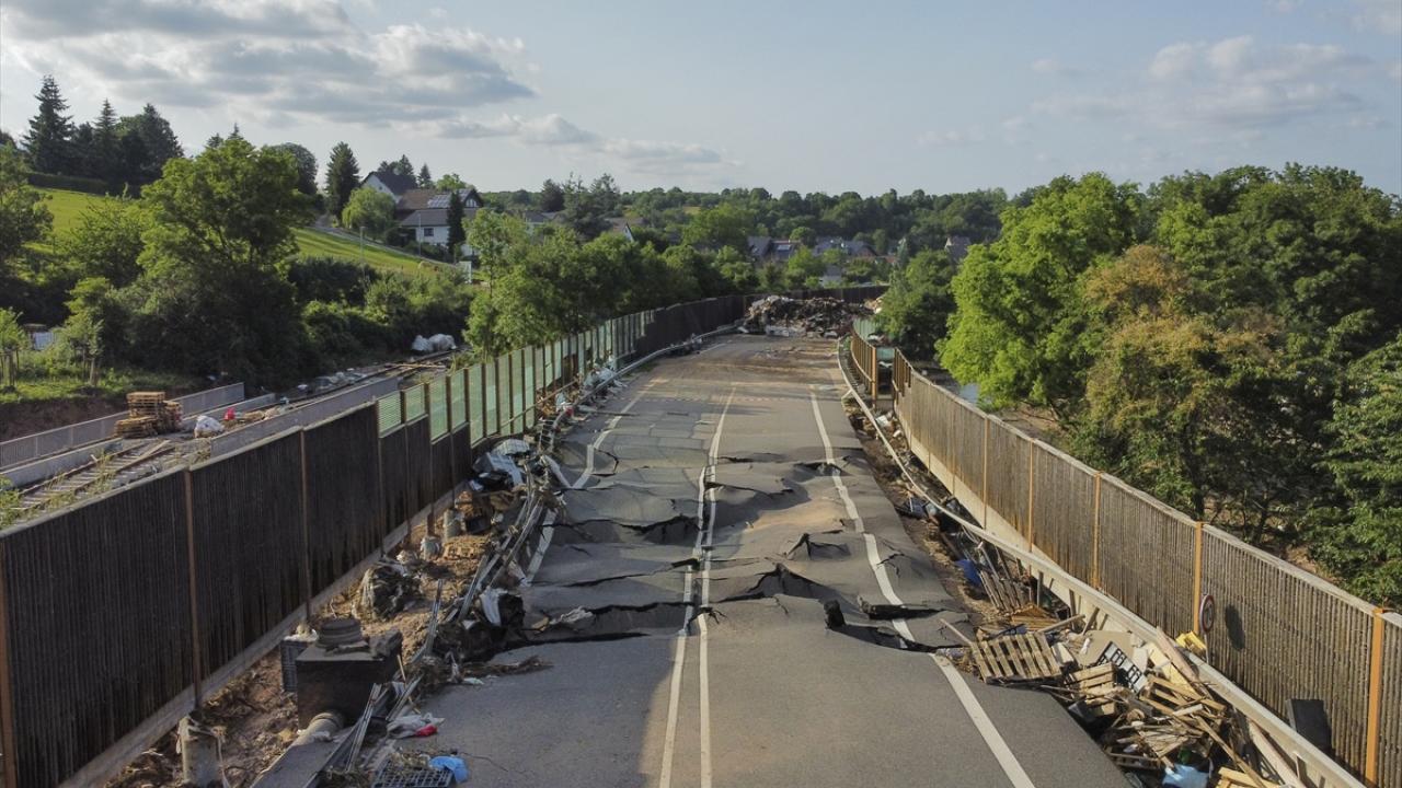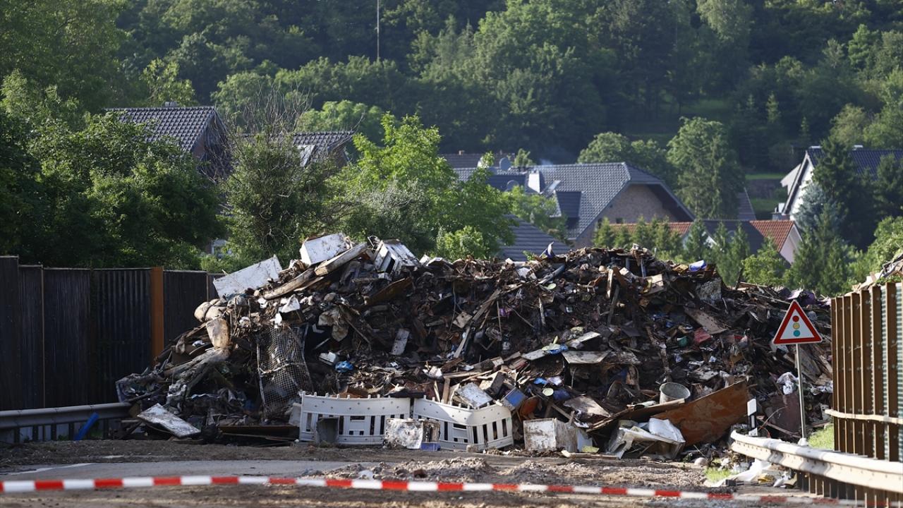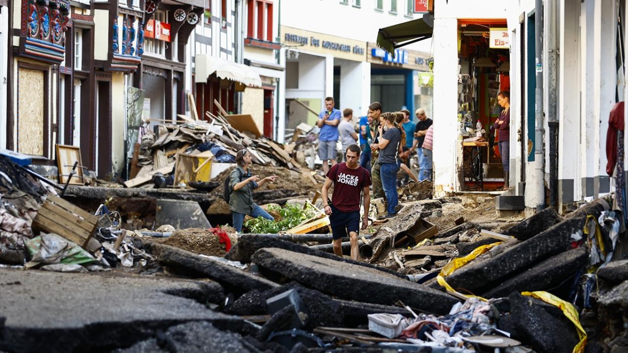 Almanya'nın batısındaki Rheinland-Pfalz ve Kuzey-Ren Vestfalya eyaletlerinde selden en çok etkilenen şehirlerden biri olan Bad Münstereifel şehri havadan görüntülendi. Kentteki tahribat gözler önüne serildi.