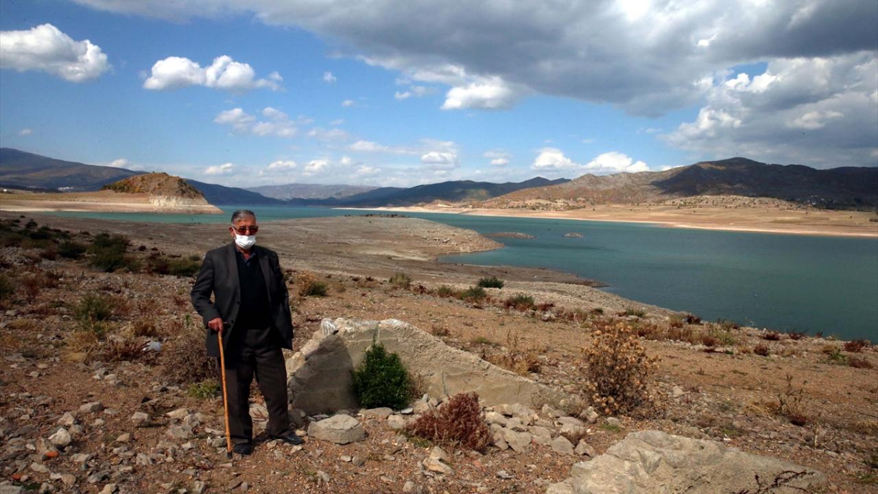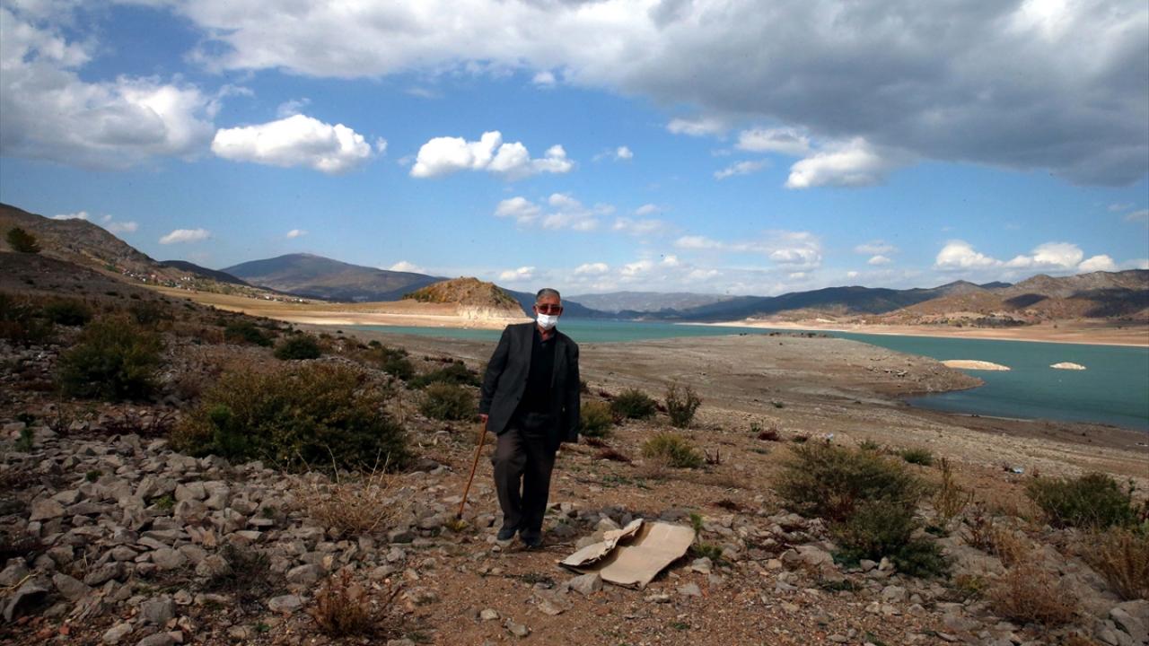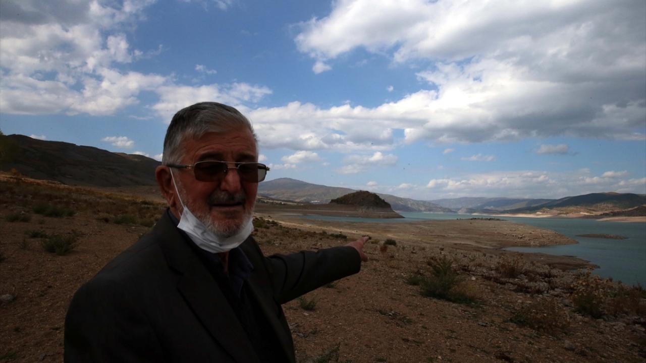 Köyünü 21 yaşında terk etmek zorunda kalan 76 yaşındaki Recep Eker, suların çekildiği alanı gezerek kalıntıları inceledi.