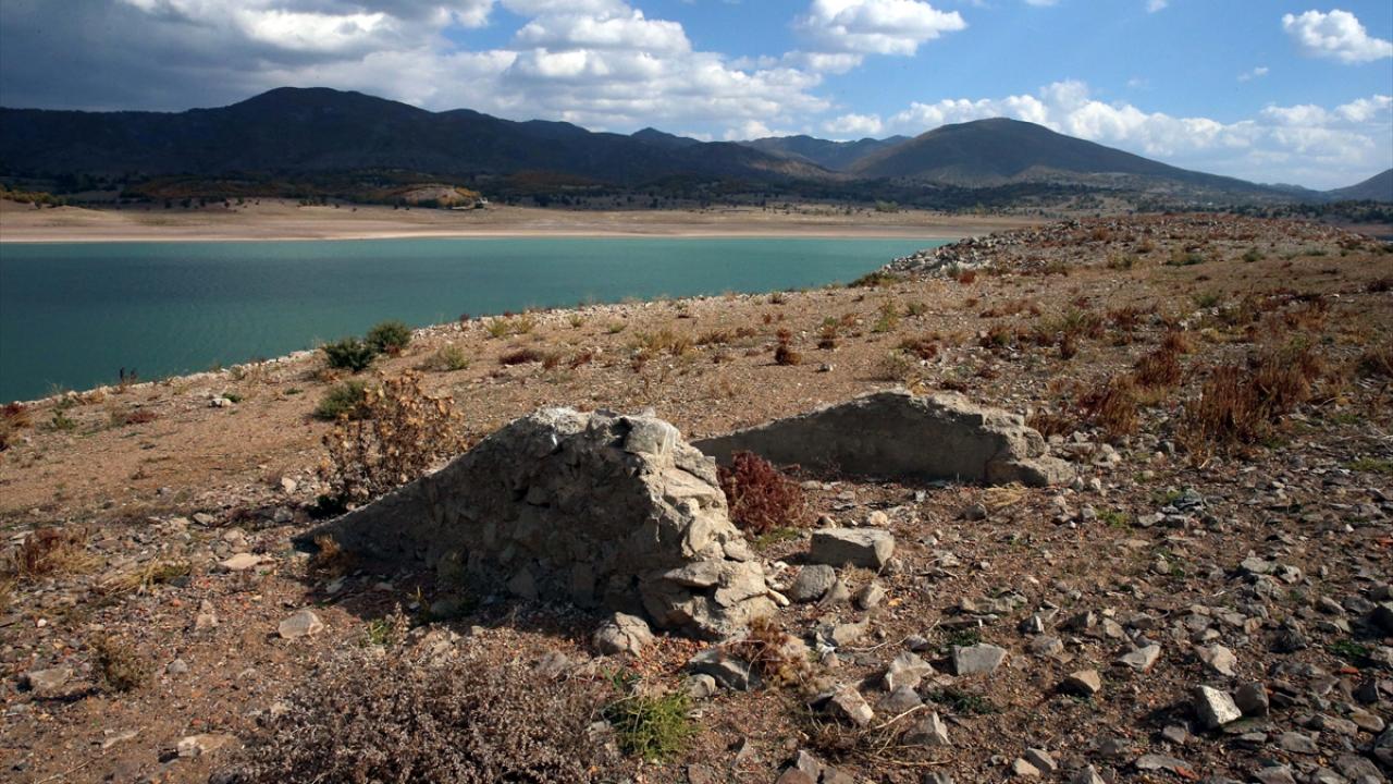 Almus Baraj Gölü çekildi, köy kalıntıları ortaya çıktı