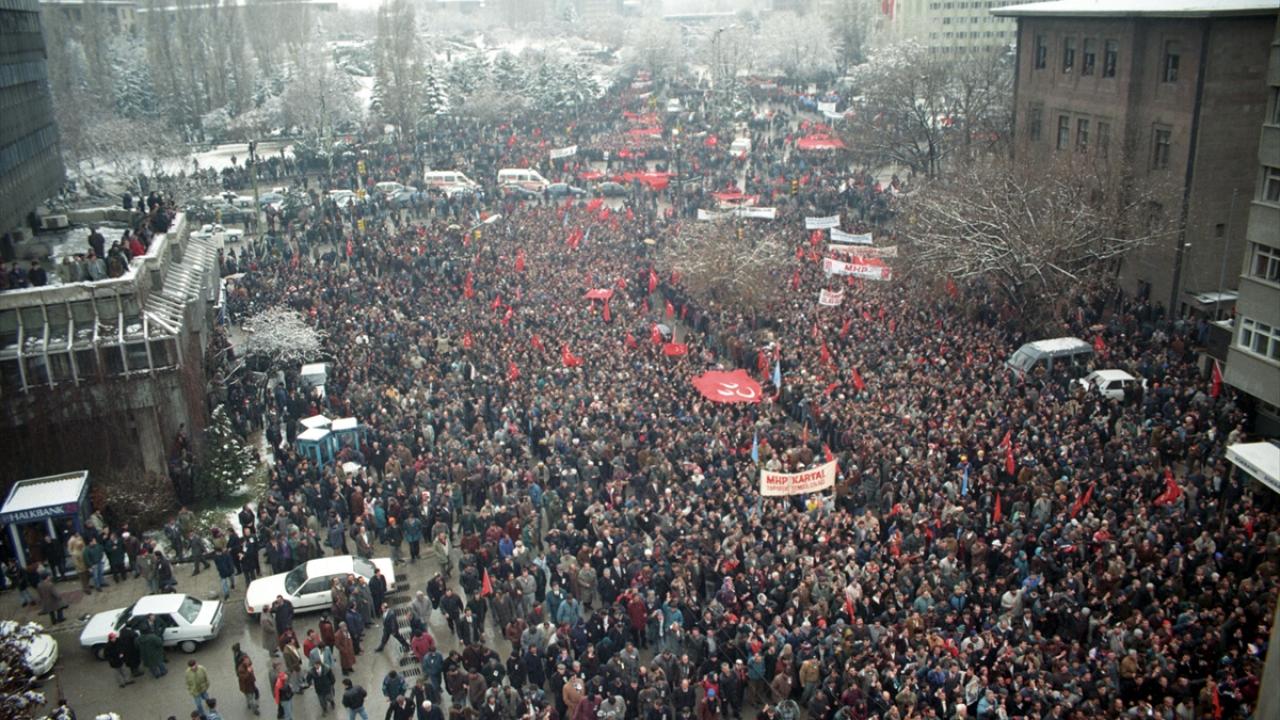 Türkeş, soğuk, karlı bir güne rağmen 10 binlerce kişinin katılımıyla son yolculuğuna uğurlandı.