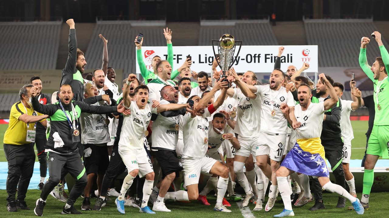 Kalan dakikalarda gol sesi çıkmayınca İzmir`in siyah-beyazlı takımı, TFF 1. Lig`de normal sezonu ilk 2`de bitirerek doğrudan Süper Lig`e yükselen Adana Demirspor ile GZT Giresunspor`un ardından üçüncü ve son takım oldu.