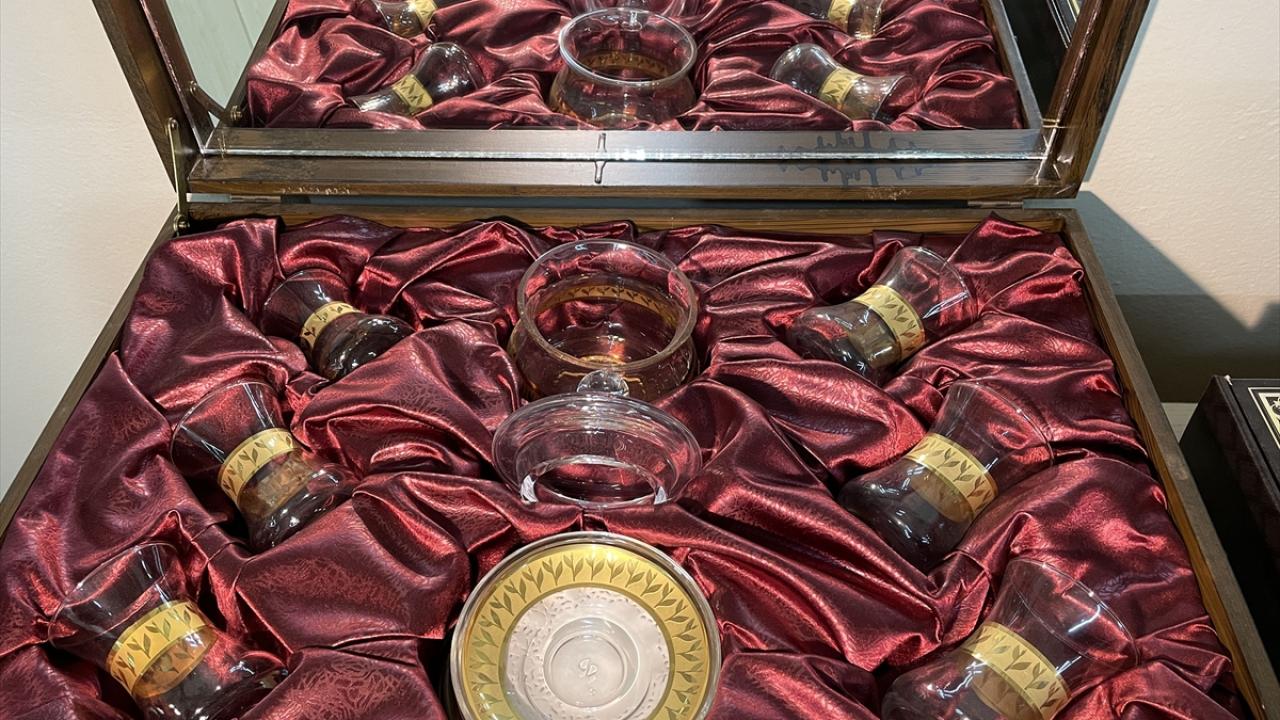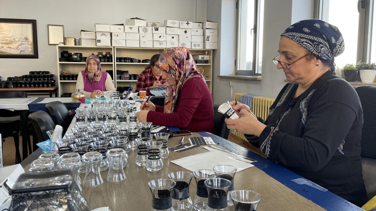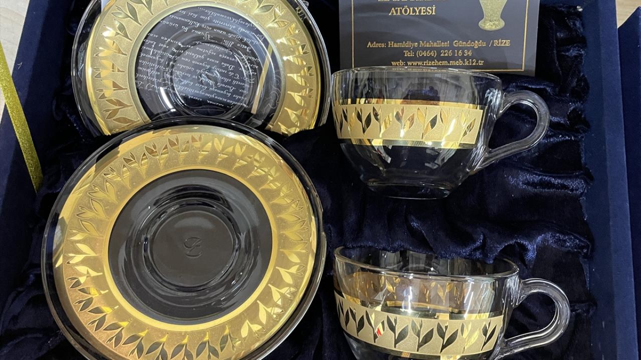 Rize Talip Kahraman El Sanatları Merkezi'nde üretilen 24 ayar altın ve platin suyu ile boyanan ince belli çay bardakları ve cam ürünleri, kadınlara istihdam sağlıyor.