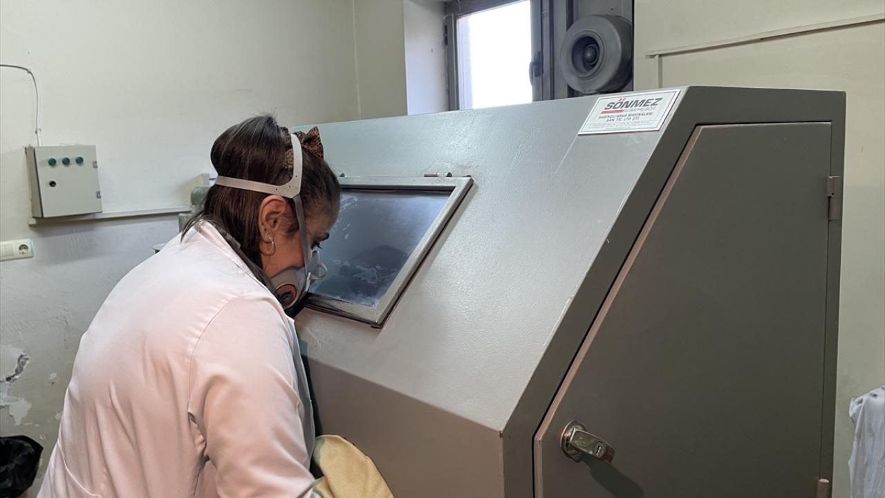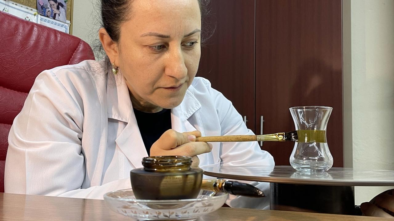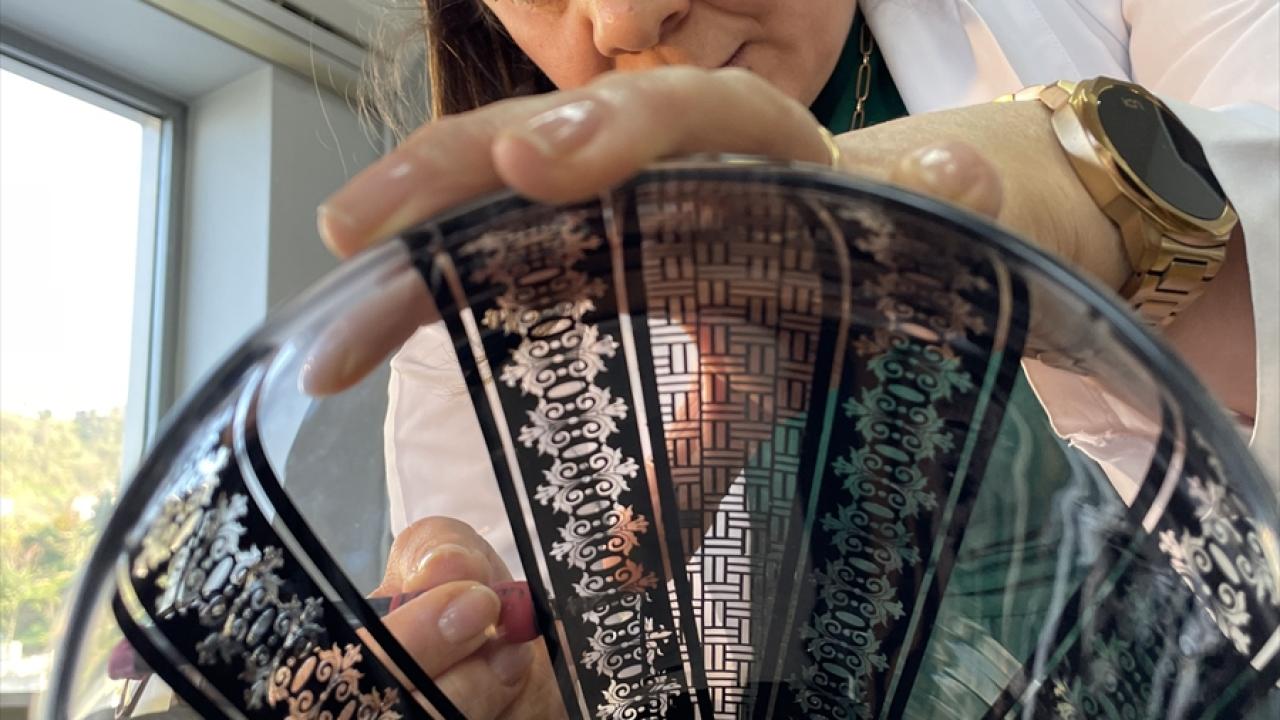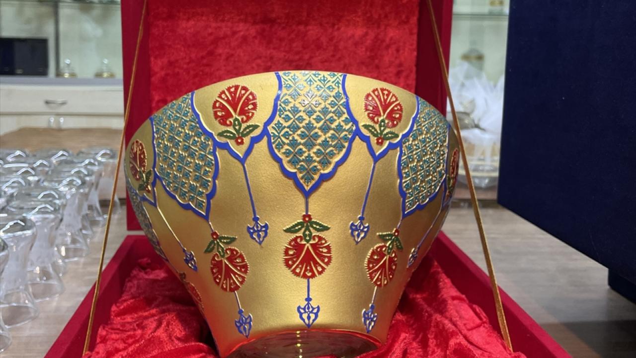 Rize Talip Kahraman El Sanatları Merkezi'nde üretilen 24 ayar altın ve platin suyu ile boyanan ince belli çay bardakları ve cam ürünleri, kadınlara istihdam sağlıyor.