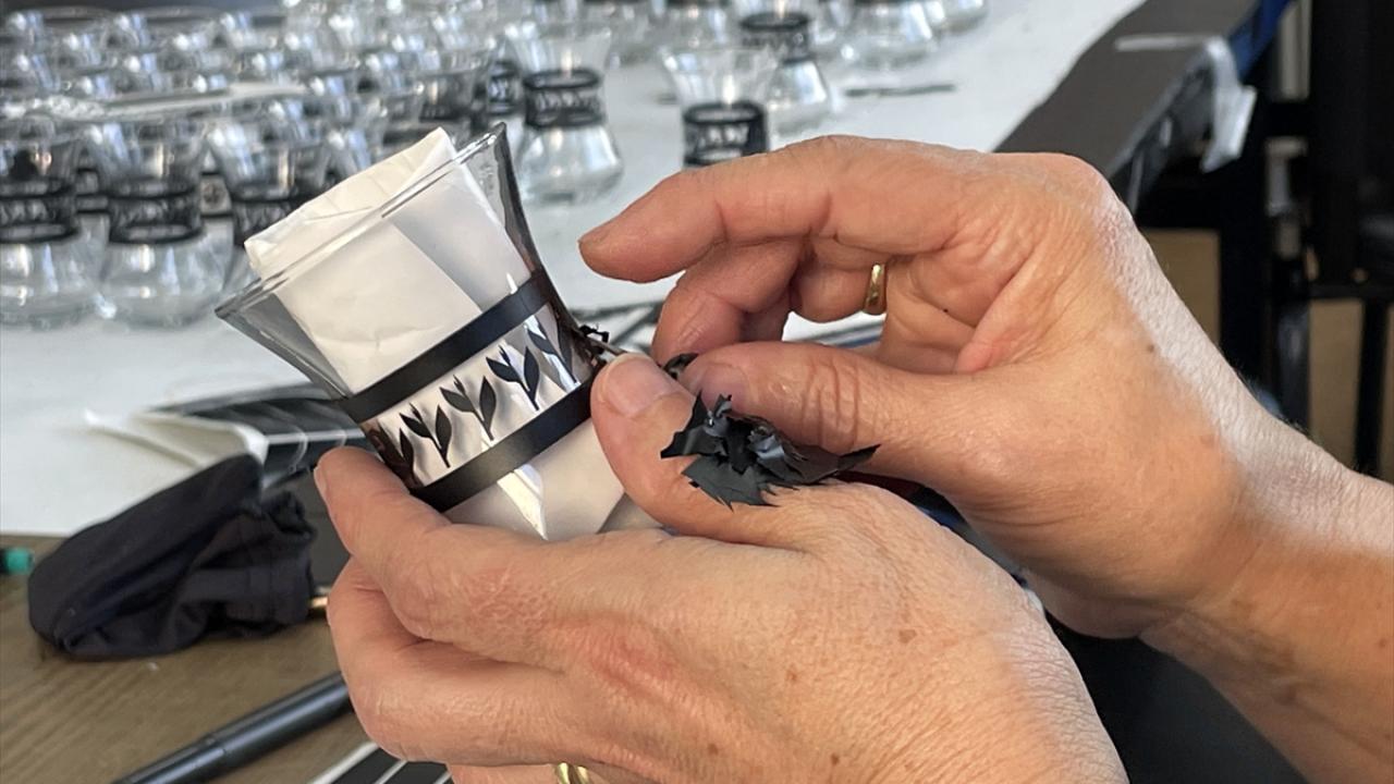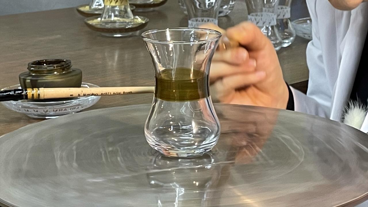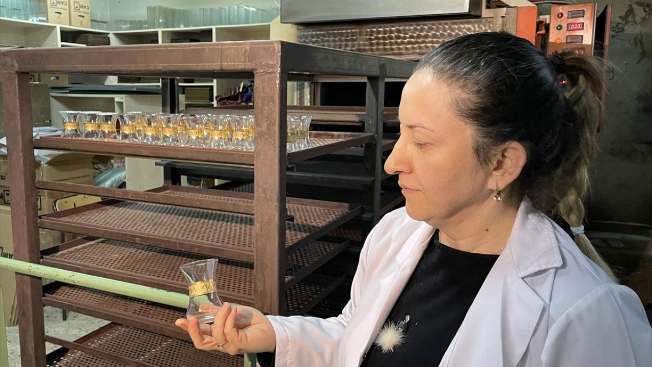 Altın boyalı ince belli çay bardakları kadın girişimcilerin elinde şekilleniyor
