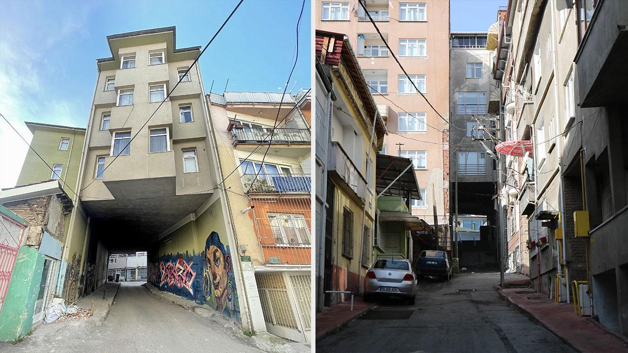 Bursa'nın merkez Osmangazi ve Samsun'un İlkadım ilçesinde altından sokak geçen binalar görenleri şaşırttı. Sokaklar araç ve yaya geçişi için kullanılıyor ve bir tarafında da otopark alanı bulunuyor.