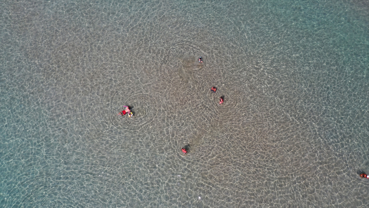 Ege Bölgesi'nin önemli turizm merkezilerinden Didim ilçesindeki dünyaca ünlü Altınkum Plajı'nda yerli ve yabancı turistler, denizin keyfini çıkarıyor.