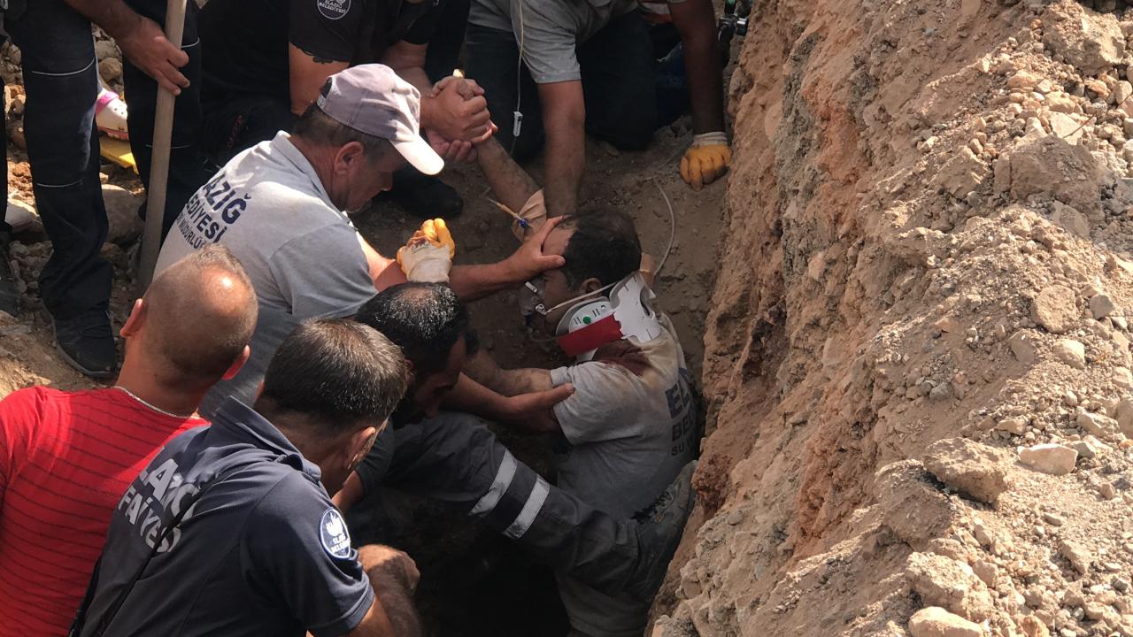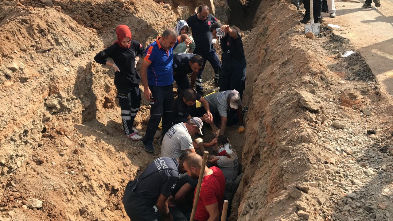 Elazığ'da altyapı çalışmasında göçük altında kalan işçi, ekiplerin çalışmasıyla kurtarılarak hastaneye kaldırıldı.