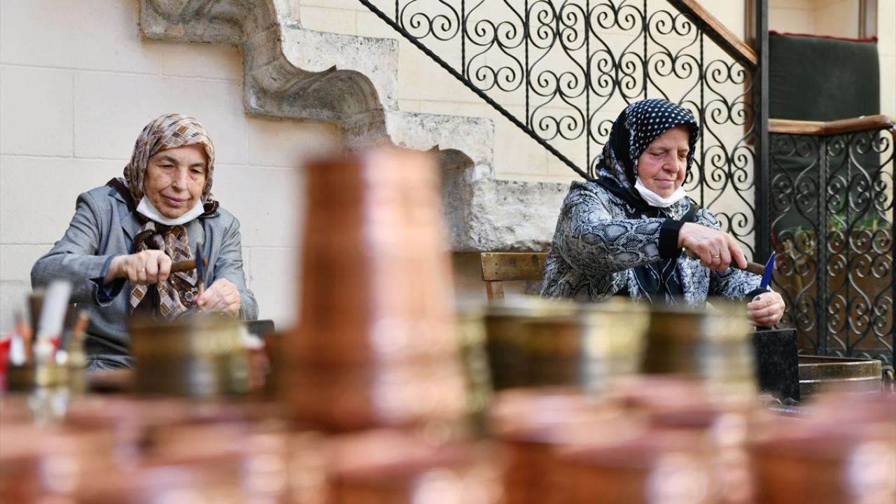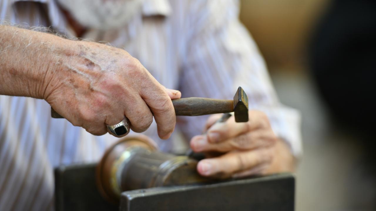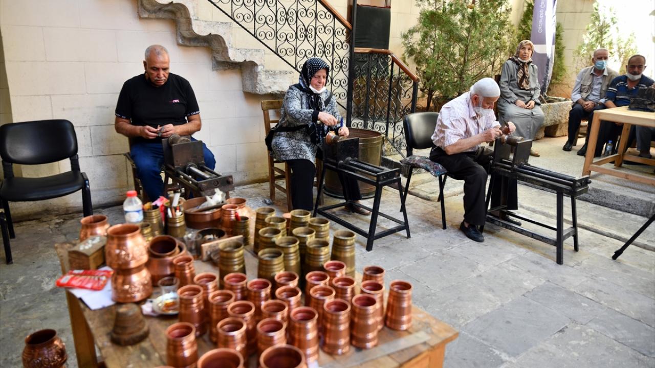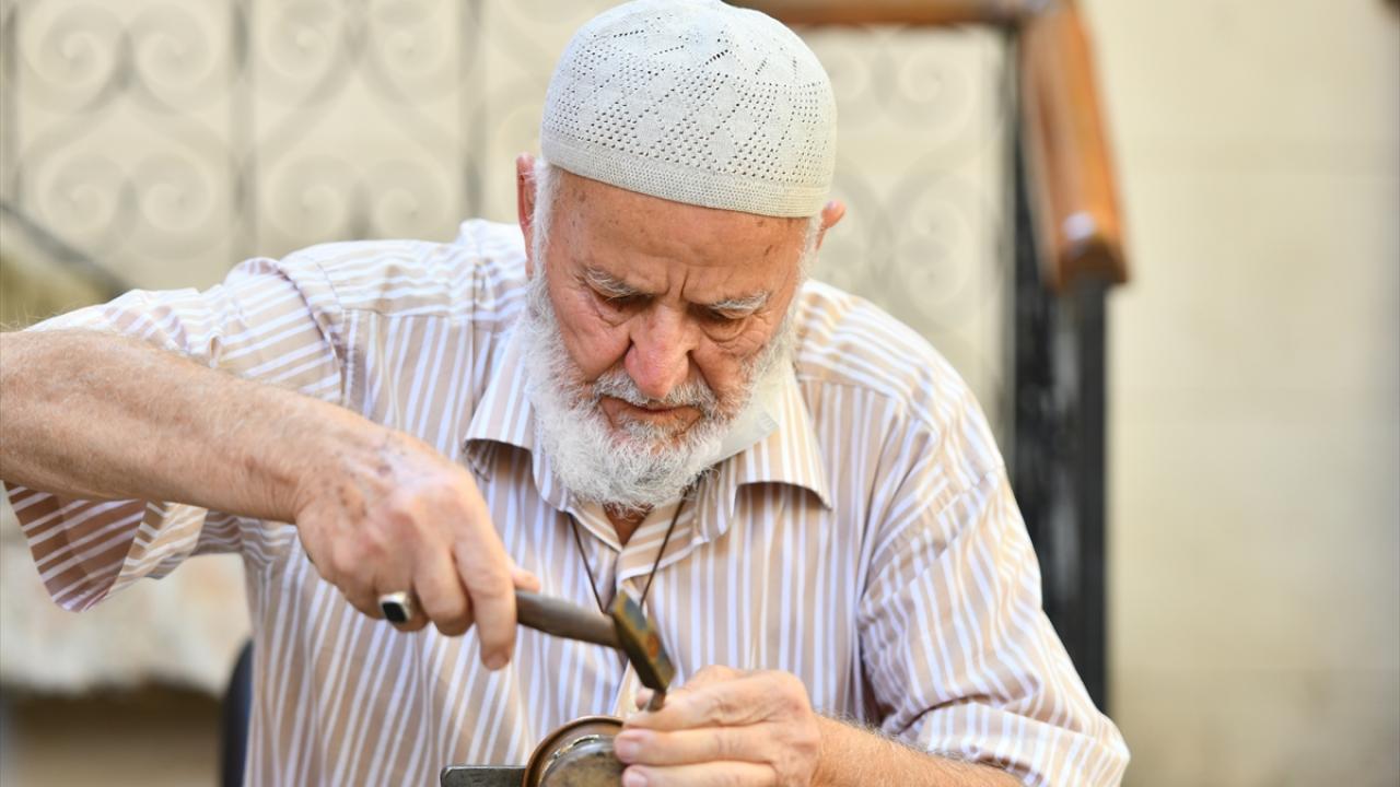 Gaziantep'te Alzaymır Hasta ve Hasta Yakınları Buluşma Merkezi ile Bakırcılar ve Sedefçiler Odası iş birliğiyle hazırlanan etkinlik kapsamında, hastalar bakır işleyerek terapi ediliyor.