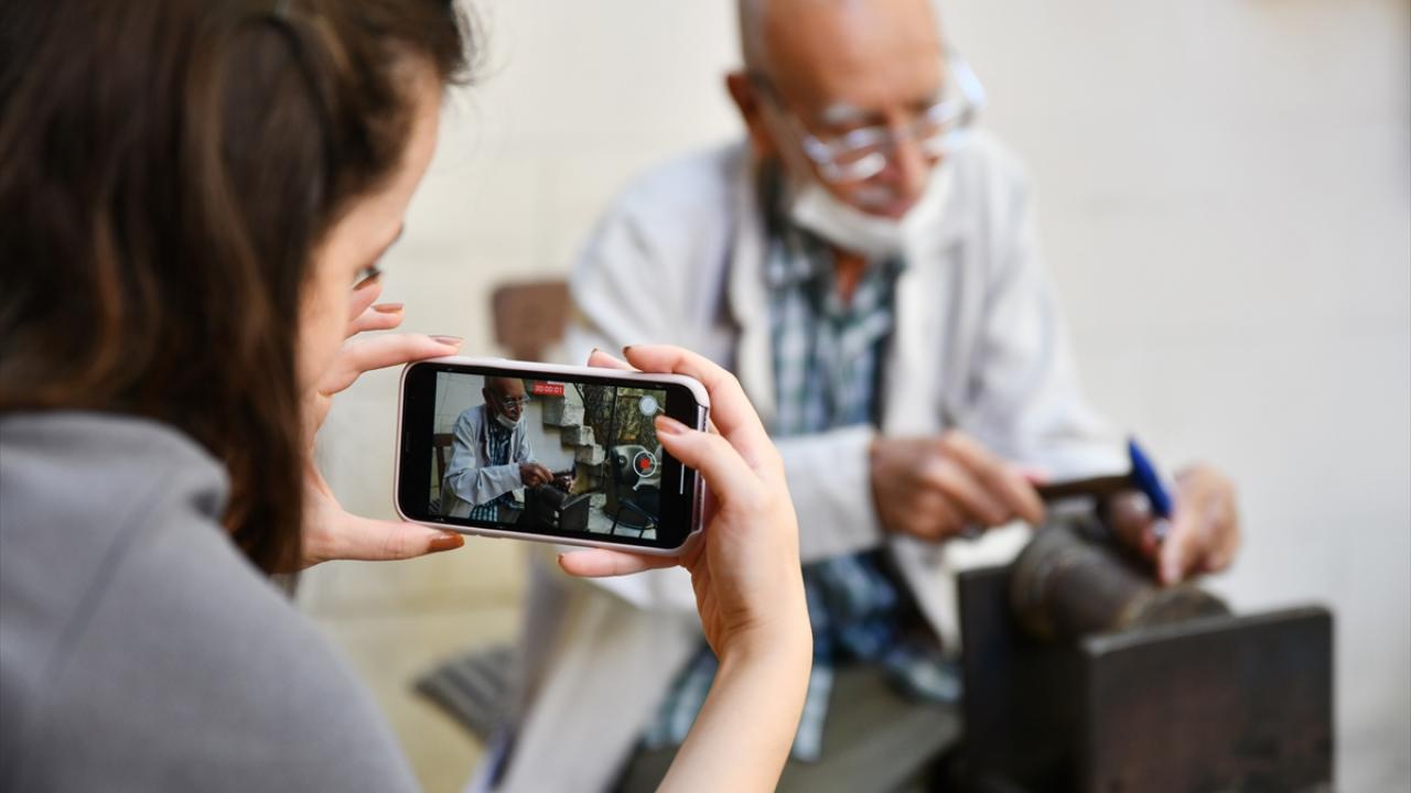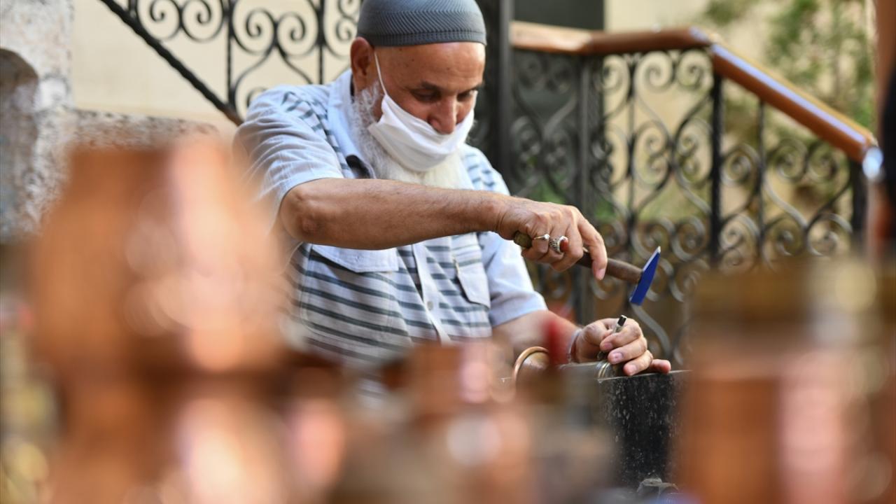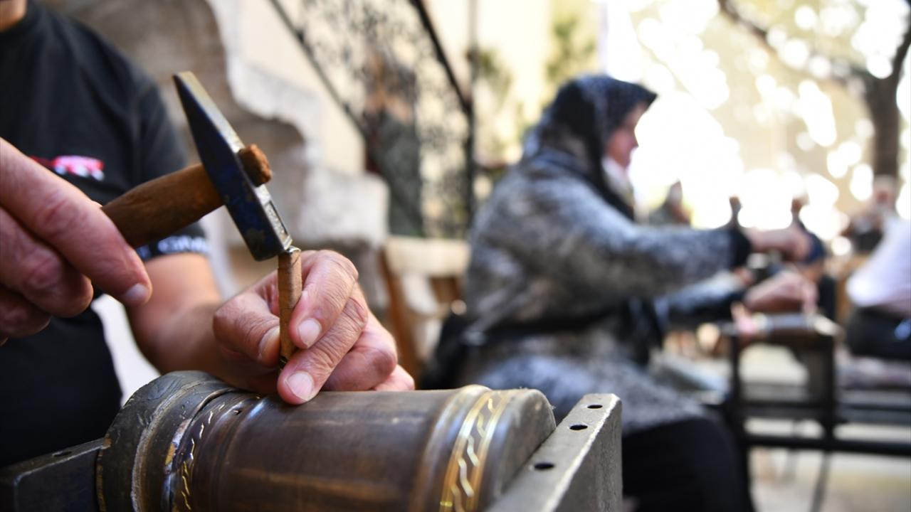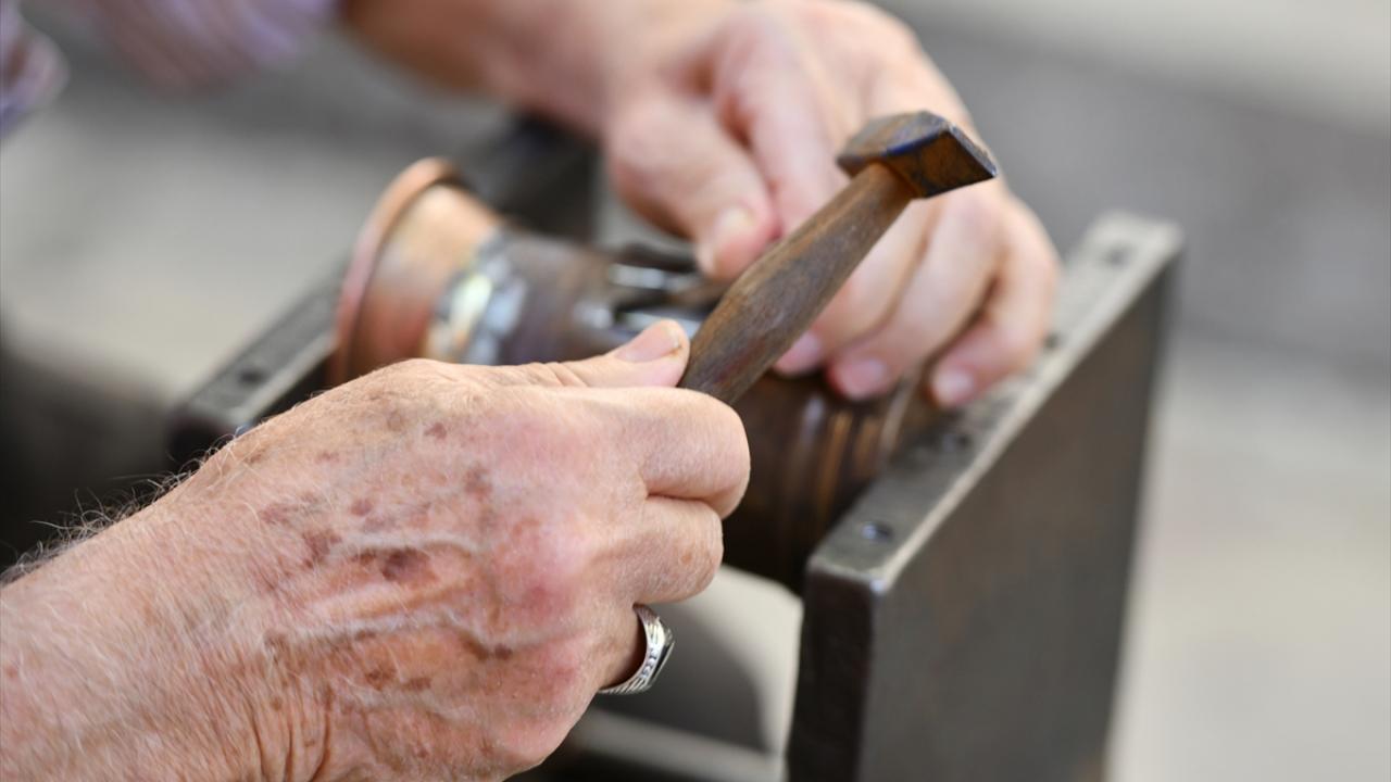 Gaziantep'te Alzaymır Hasta ve Hasta Yakınları Buluşma Merkezi ile Bakırcılar ve Sedefçiler Odası iş birliğiyle hazırlanan etkinlik kapsamında, hastalar bakır işleyerek terapi ediliyor.