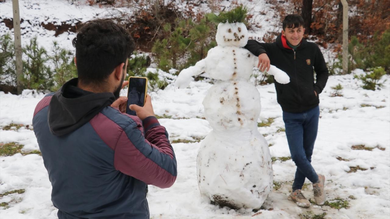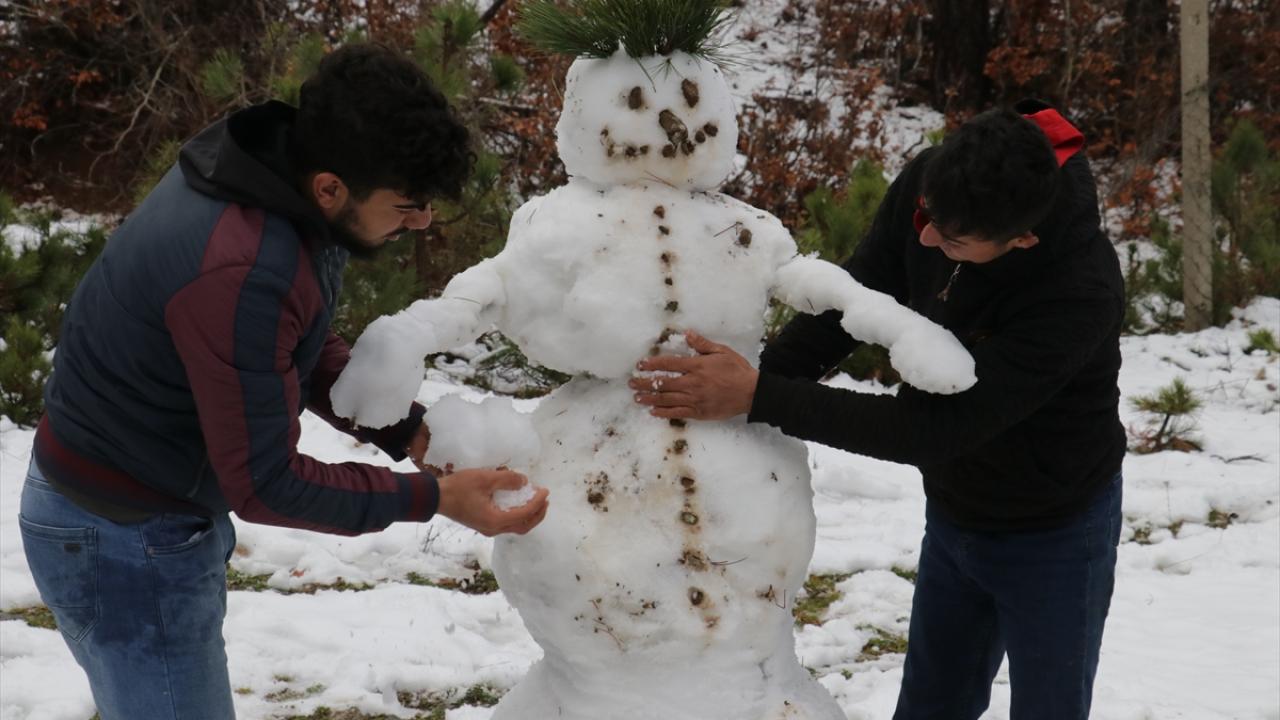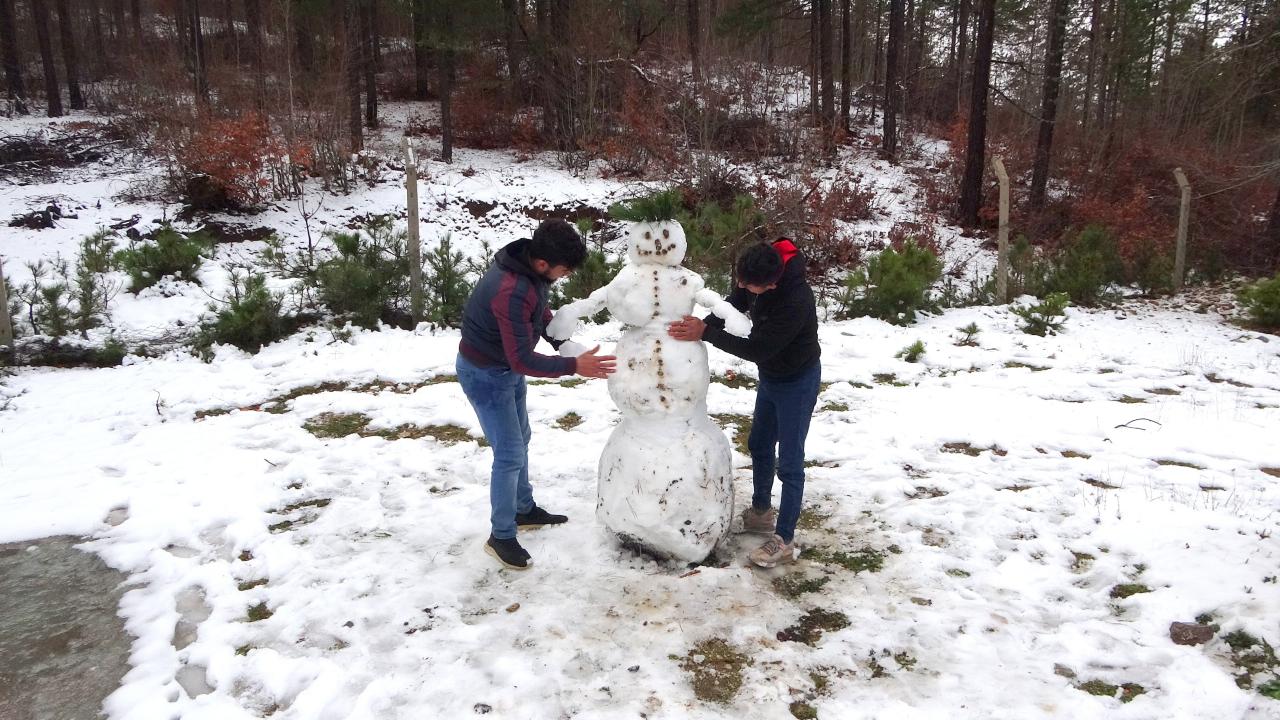 Karın zevkini çıkarmak isteyen vatandaşlar da araçlarıyla gittikleri yaylada kardan adam yaptı.
