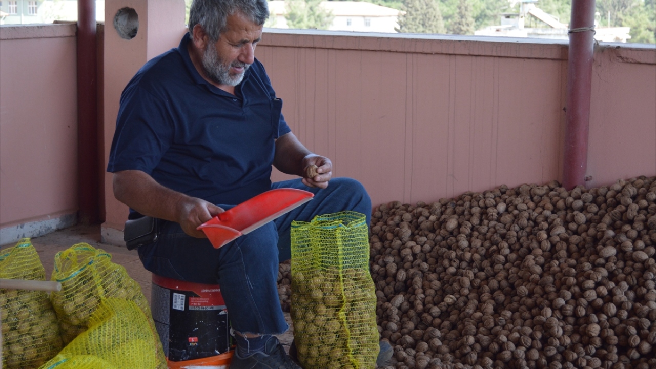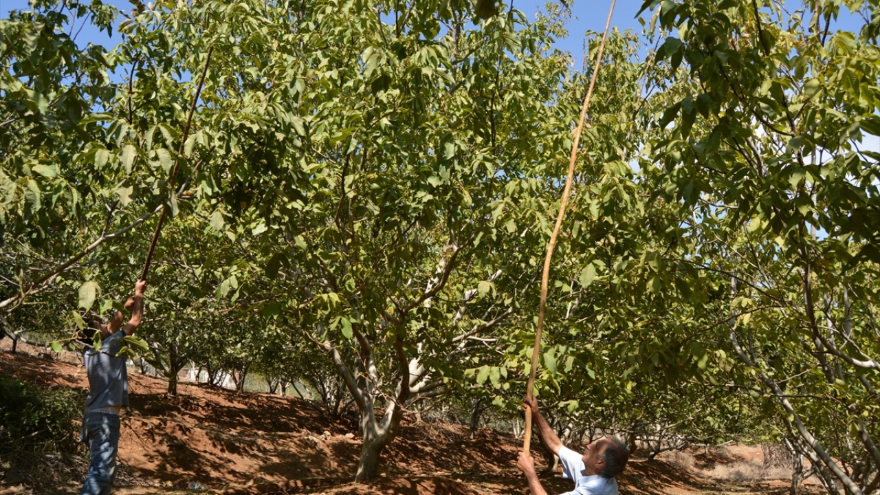 Gaziantep'in İslahiye ilçesinde Amanosların eteklerinde yaklaşık 250 dekar alanda yetiştirilen cevizde hasat devam ediyor.