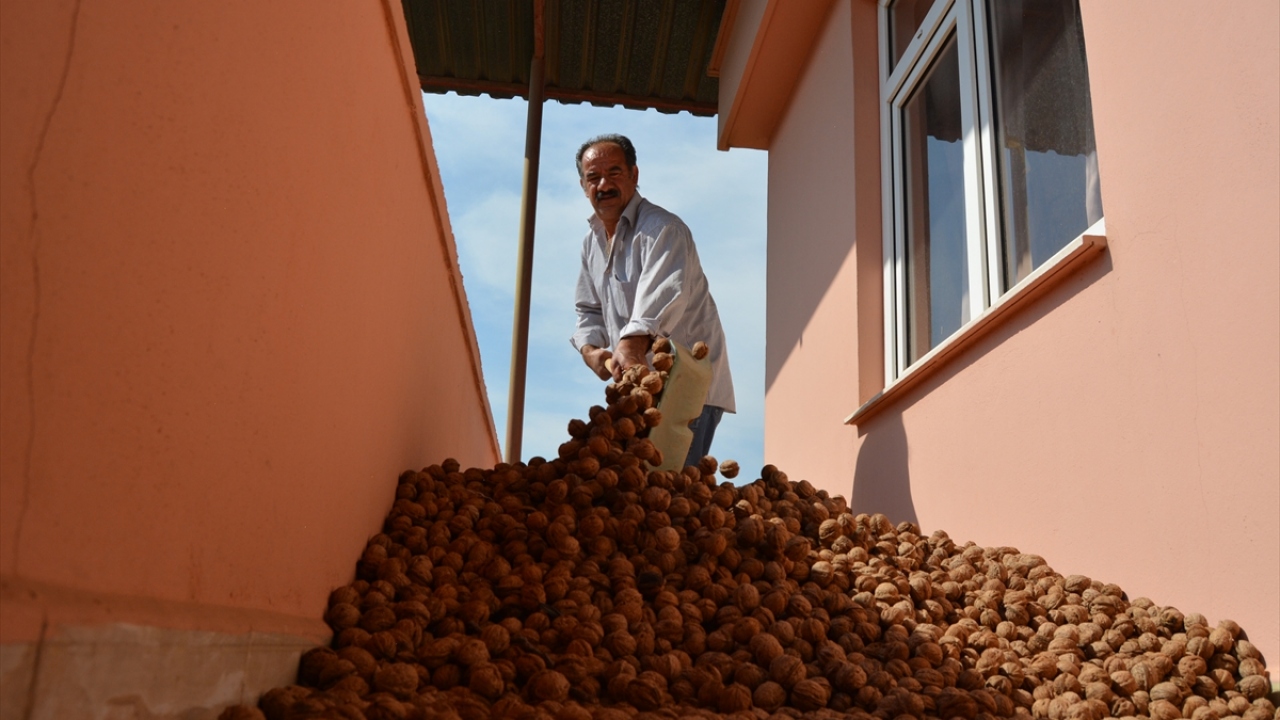 Sırık değnekler ve özel makinelerle çırpılarak toplanan yaş cevizler, dış kabuğu soyulduktan sonra güneşte yaklaşık 10 gün kurutuluyor.