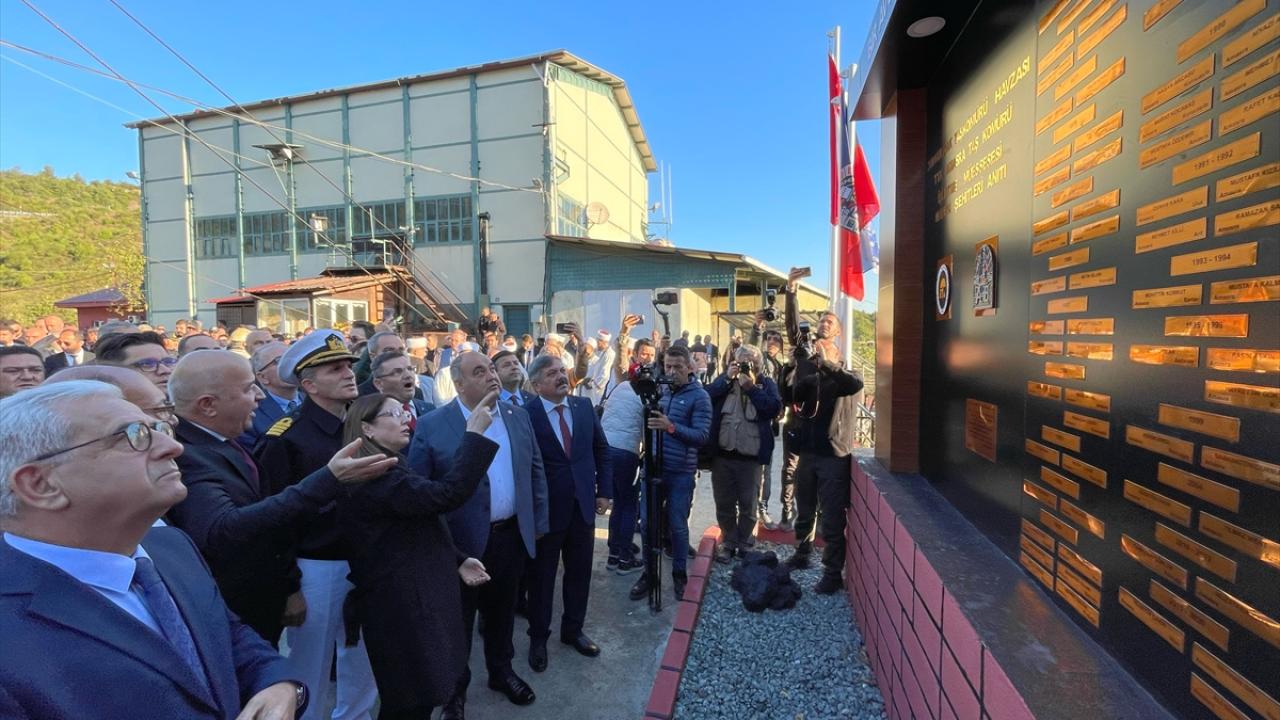 Bartın`ın Amasra ilçesindeki maden ocağında meydana gelen patlamada hayatını kaybeden işçiler için müessesedeki servis kuyusunun önünde anma töreni düzenlendi.