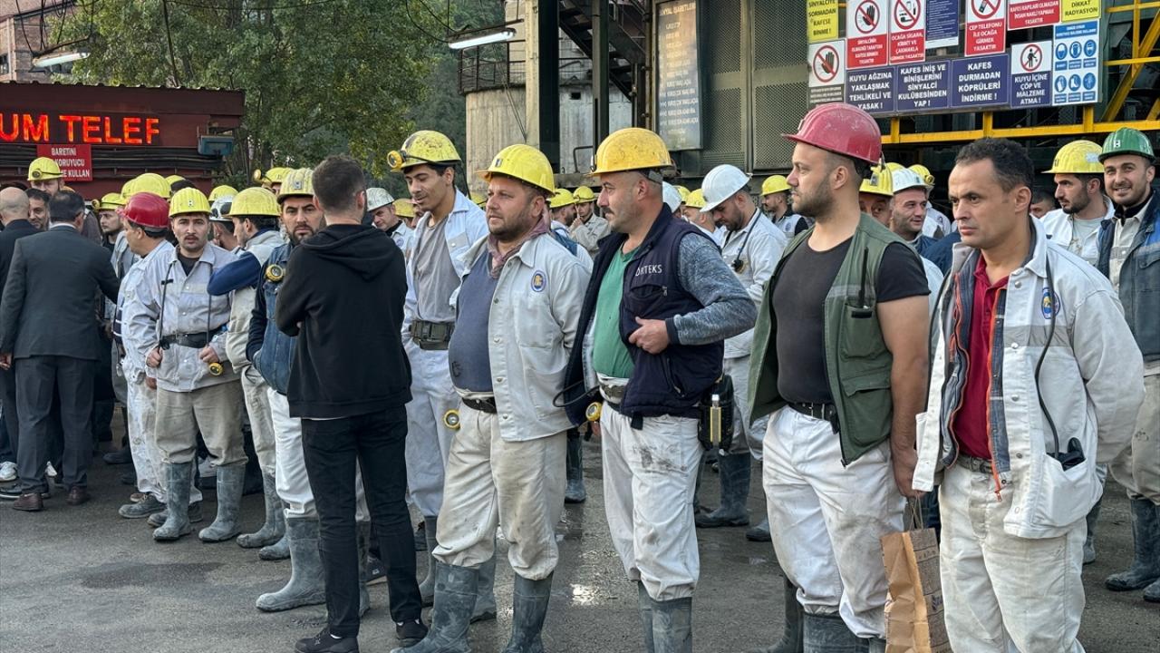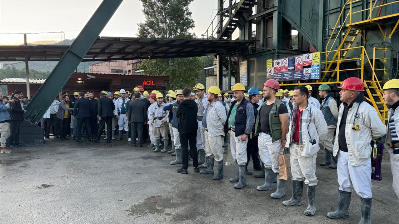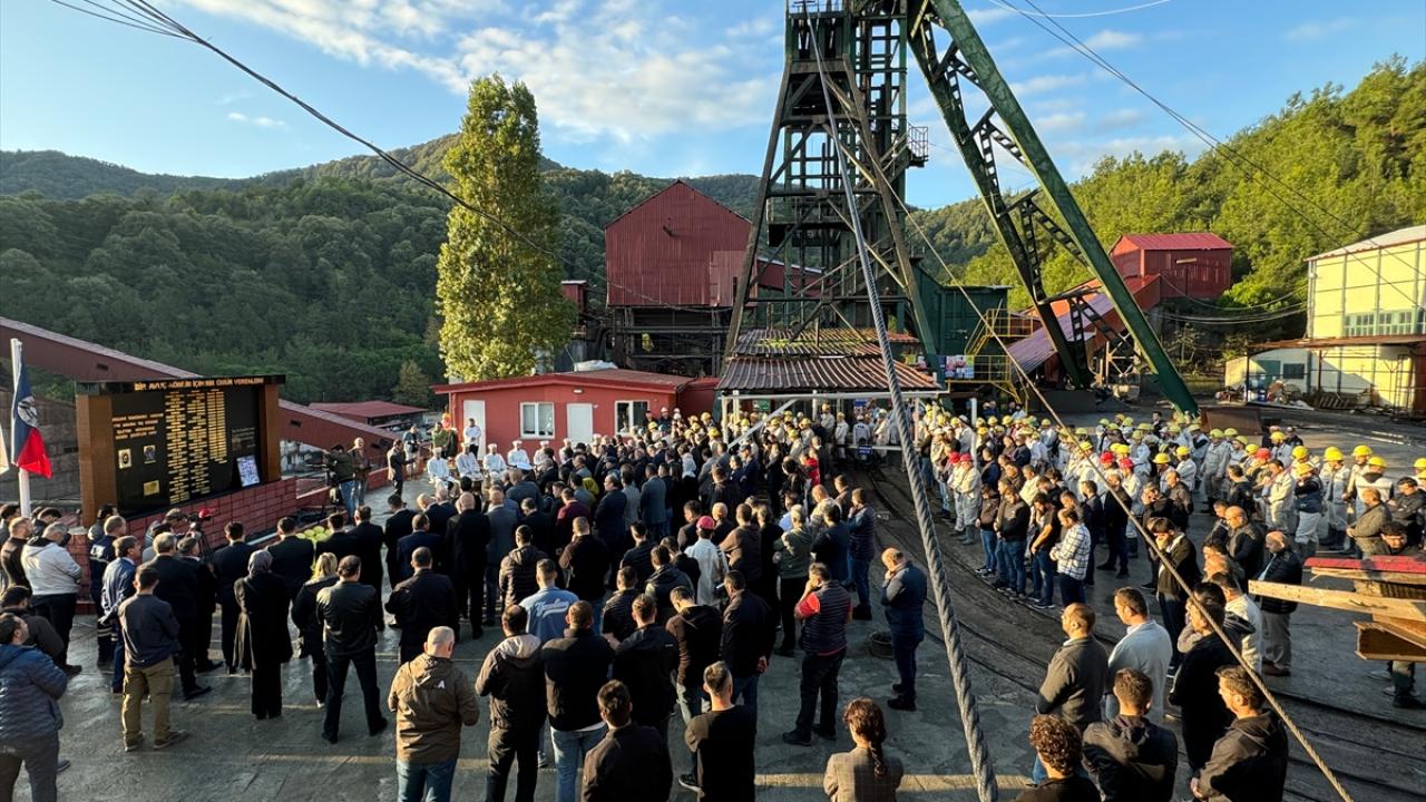 Bartın`ın Amasra ilçesindeki maden ocağında meydana gelen patlamada hayatını kaybeden işçiler için müessesedeki servis kuyusunun önünde anma töreni düzenlendi.