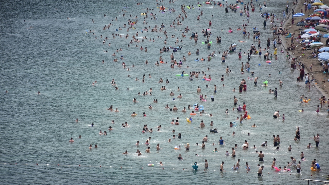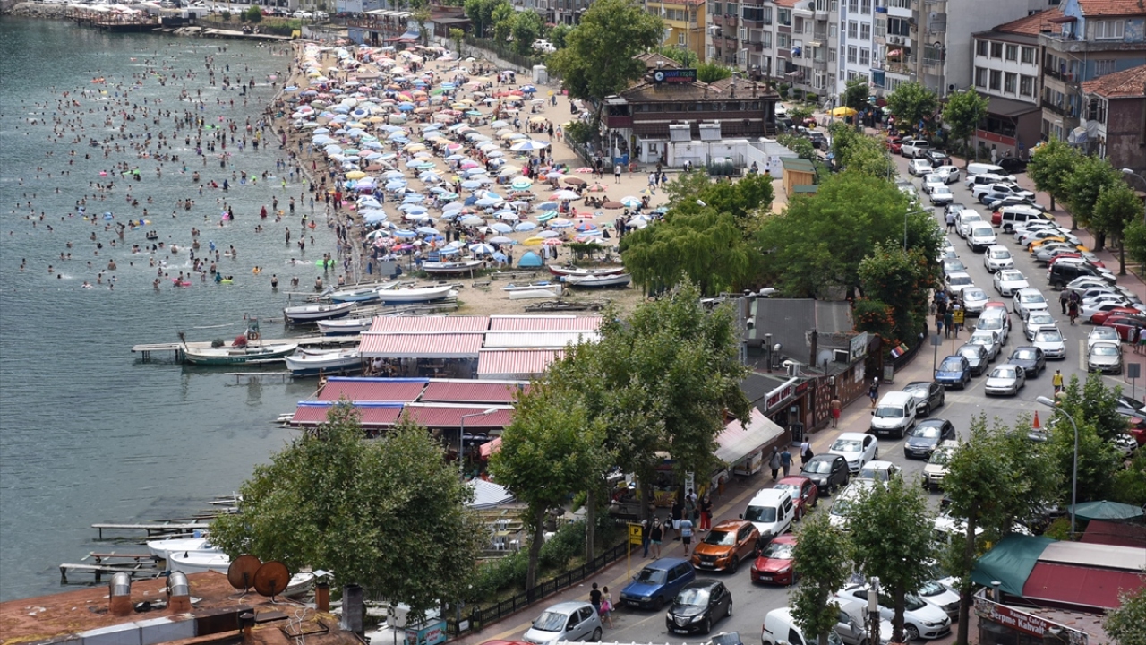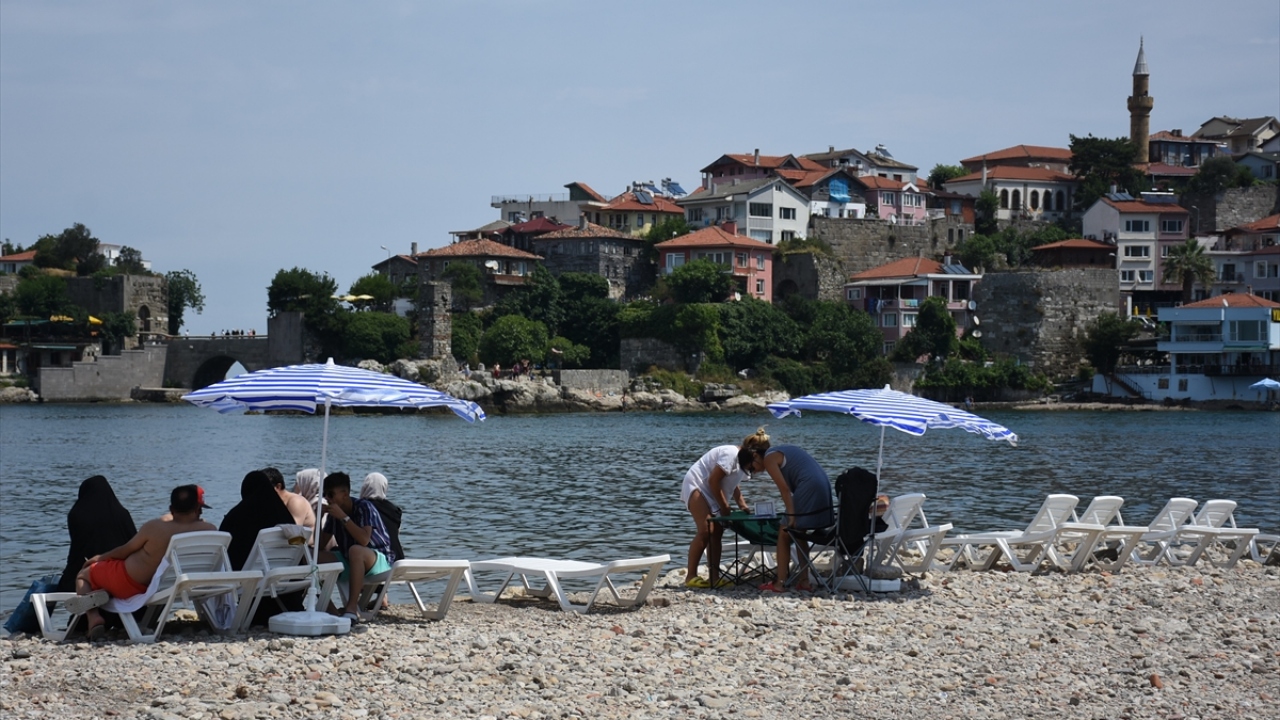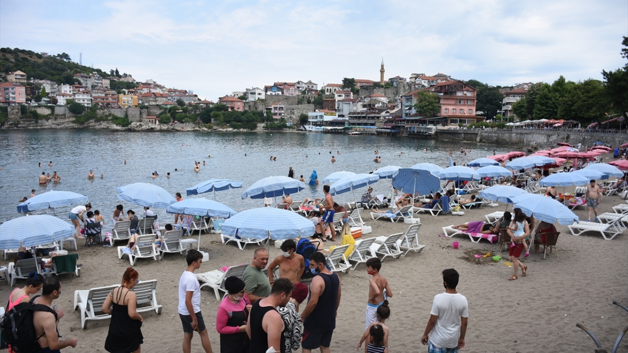 Hava sıcaklığının 35 derece ölçüldüğü Amasra`da, Büyük Liman ve Küçük Liman mevkisindeki plajlar da tamamen doldu.