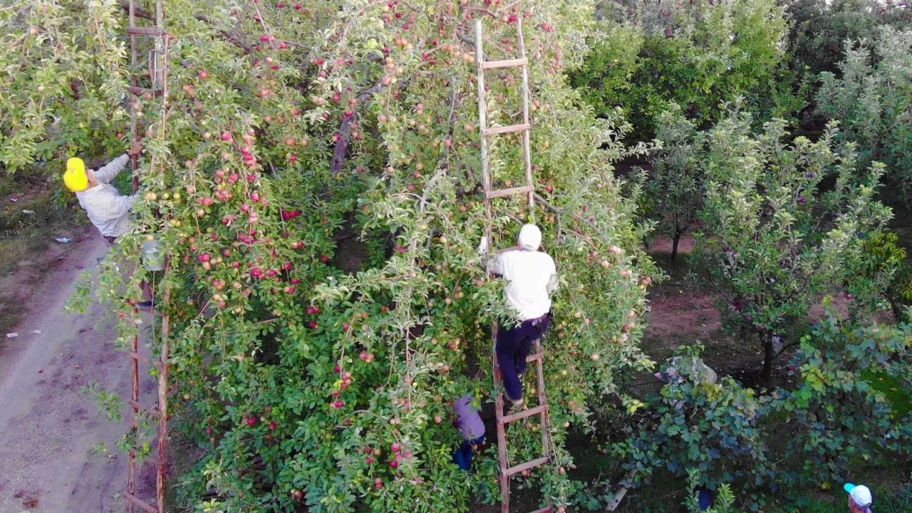 Diğer elma türleriyle birlikte toplamda 35 bin tondan fazla elma üretiminin beklendiği kentte erken saatlerden itibaren bahçelerin yolunu tutan çiftçiler merdivenlerle ağaçlara tırmanıp gün boyunca hasat yapıyor.
