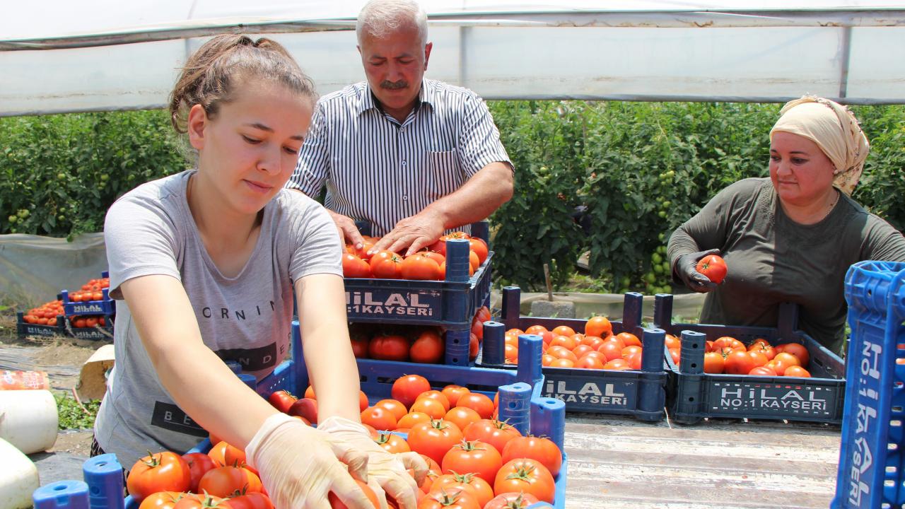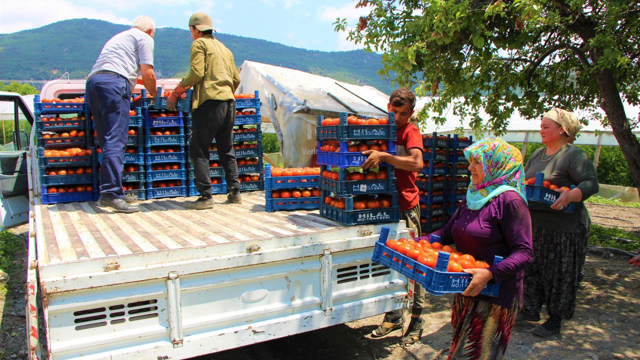 Yeşilırmak’ın kıyısındaki verimli arazisinin tamamına yakını örtü altı seralarla kaplı olan Aksalur köyünde üreticiler sabahın ilk ışıklarından itibaren seraların yolunu tutup gün boyunca domates topluyor.