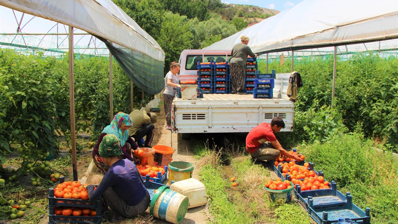 Yöredeki köylerde yaz boyunca sebze hasadında üreticilerin yanı sıra Güneydoğu kentlerinden gelen mevsimlik tarım işçileri de istihdam ediliyor.