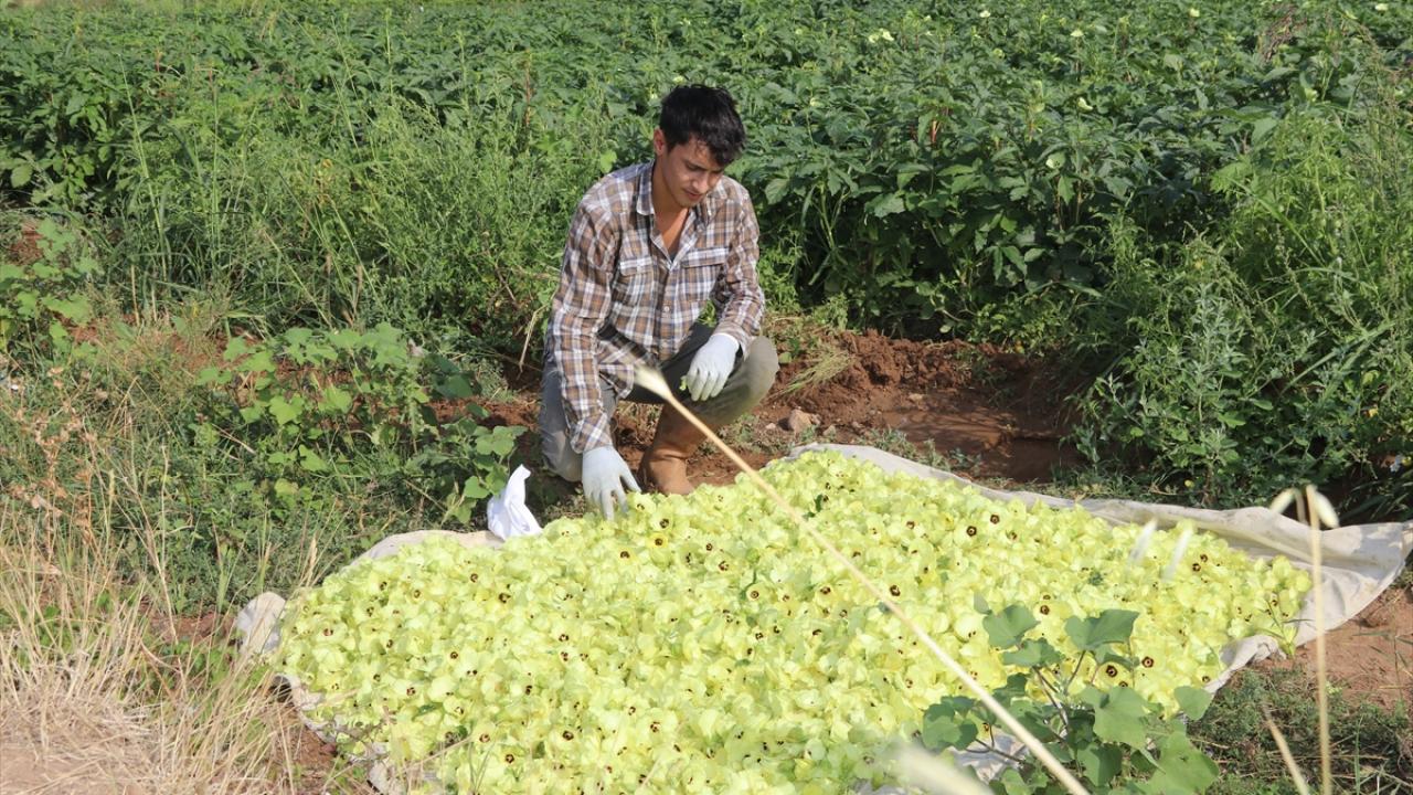 Çiçek bamyası üreticisi Merve Namlı da her gün saat 05.00`te tarlaya geldiklerini belirterek, "Çiçek bamyası üretmek çok zahmetli, her sabah tarlaya geliyoruz ve bamyalarımızı topluyoruz. Topladığımız bamyalarımızı akşama kadar iplere tek tek diziyoruz, bir müddet sonra çiçeklerini döküyoruz. Şu an kurutulmuşunun kilogram fiyatı 1050 lira civarında. Yöremiz insanının dediği gibi çiçek bamyası, üreten kişiyi düğünde güldürmez, cenazede ağlatmaz çünkü her gün tarlaya gelip bamyayı toplamak zorundasın. Yaklaşık olarak altı ay kadar hasadı devam ediyor, yağmur çamur demeden günlük geliyoruz. Çiçek bamya üretmesi çok zahmetli ancak bu ürünü yapmak zorundayız." ifadelerini kullandı.