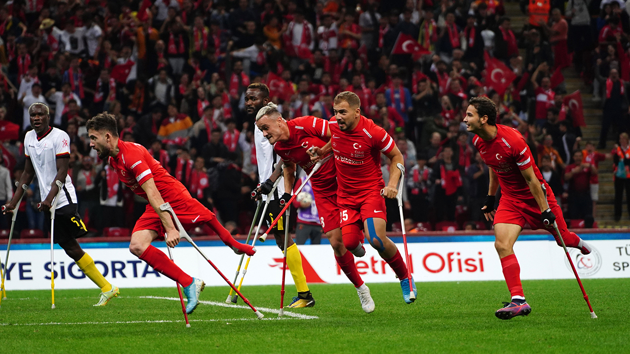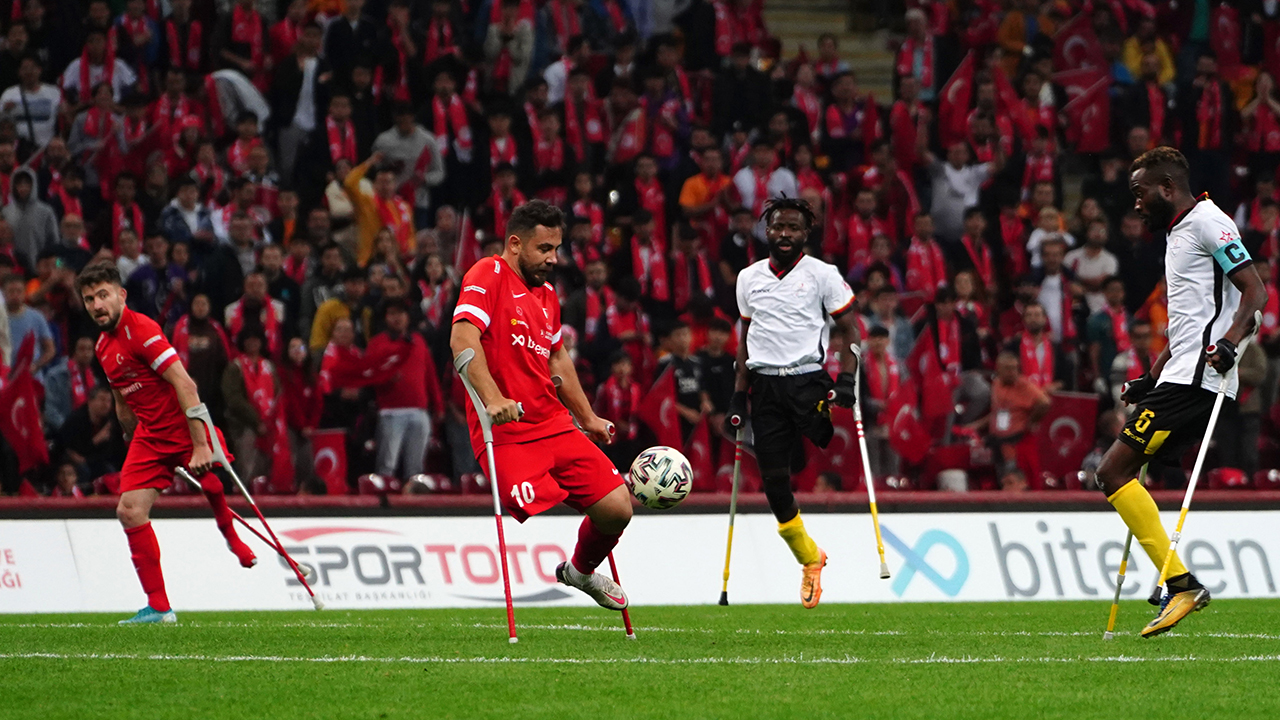 Türkiye Futbol Federasyonunun "Türkiye Futbol Oynuyor" projesi kapsamında destek verdiği Türkiye Bedensel Engelliler Spor Federasyonu bünyesindeki Ampute Futbol Milli Takımı, Nef Stadı`nda Angola ile karşılaştı.