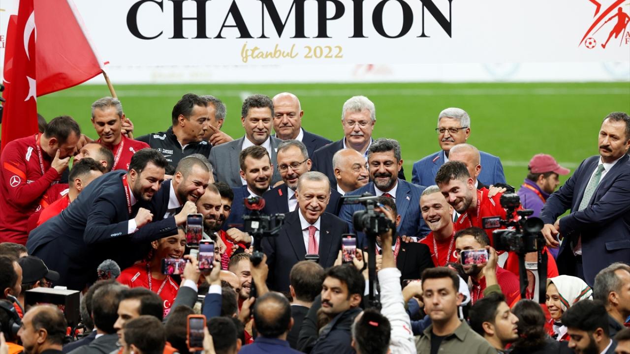Cumhurbaşkanı Recep Tayyip Erdoğan, Milli futbolculara madalyalarını ve şampiyonluk kupasını verdi.