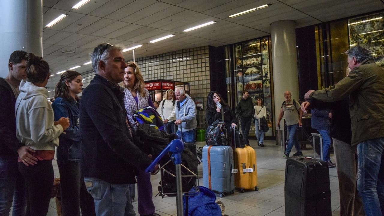 Uçuşları iptal edilen yolcular havaalanında yoğunluk oluşturdu.