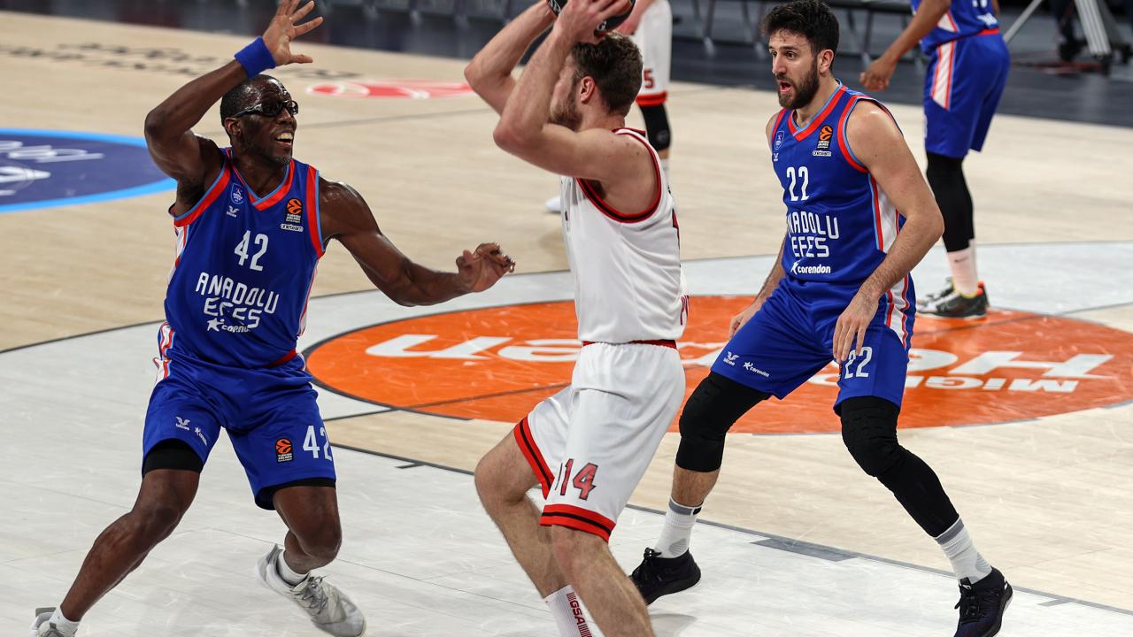 Son periyotta farka giden Anadolu Efes, ilk 5 dakikasında sayı yemediği çeyrekte sahadan 88-69 galip ayrıldı.