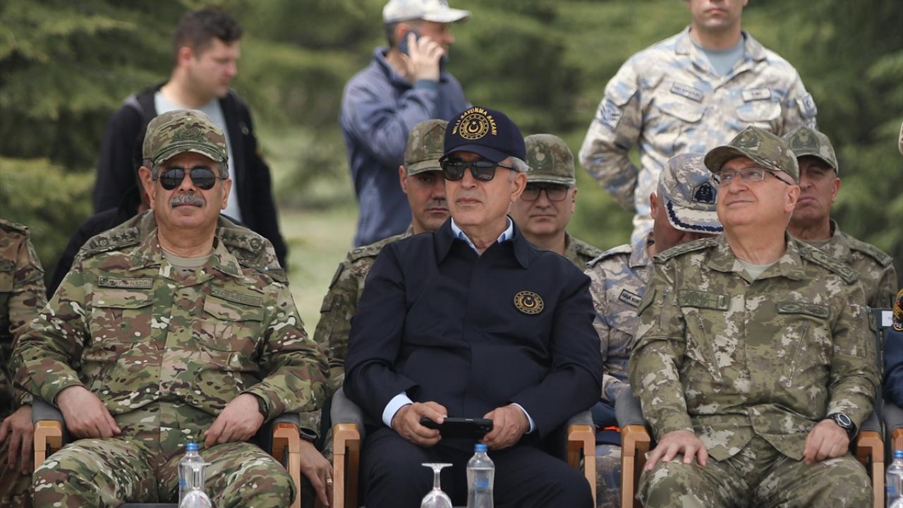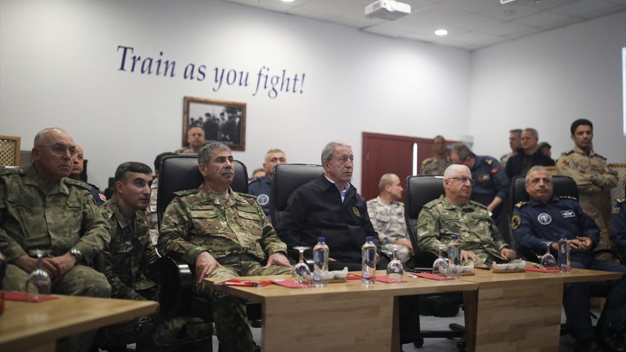 Milli Savunma Bakanı Hulusi Akar, Azerbaycan Savunma Bakanı Orgeneral Zakir Hasanov ile takip ettiği "Anadolu Kartalı 2023 Tatbikatı"nın Seçkin Gözlemci Günü'ne katıldı.