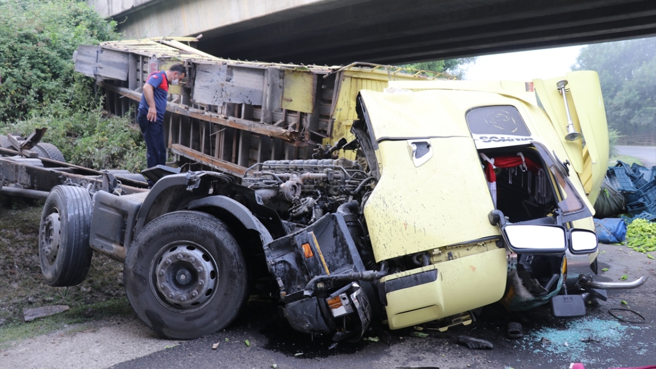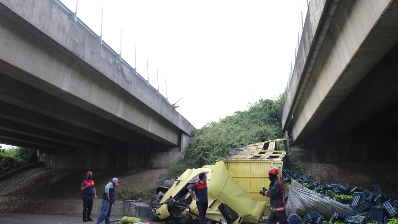 Anadolu Otoyolu Düzce kesiminde biber yüklü tırın köprüden düşmesi sonucu 2 kişi yaralandı.