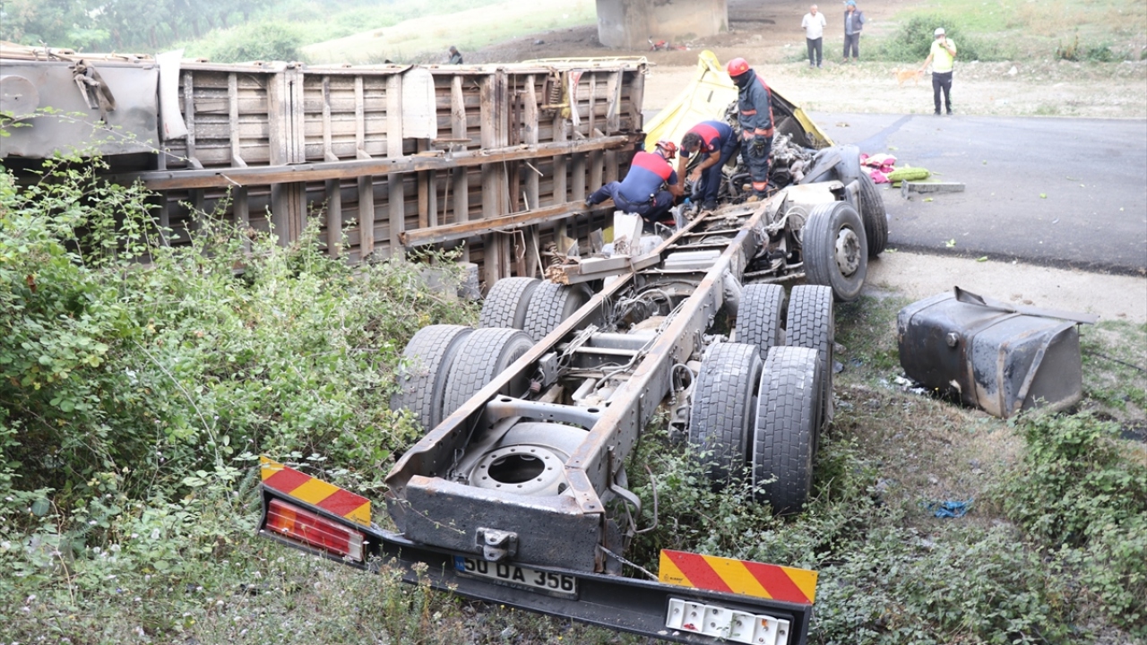 Anadolu Otoyolu'nda biber yüklü tır köprüden düştü