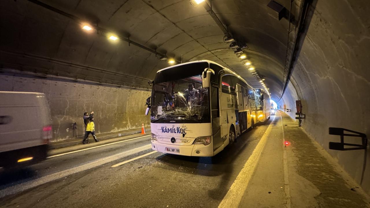 Otoyolun İstanbul istikameti Korutepe Tüneli mevkisinde 2 otobüs ve 1 tırın karıştığı zincirleme trafik kazası meydana geldi.
