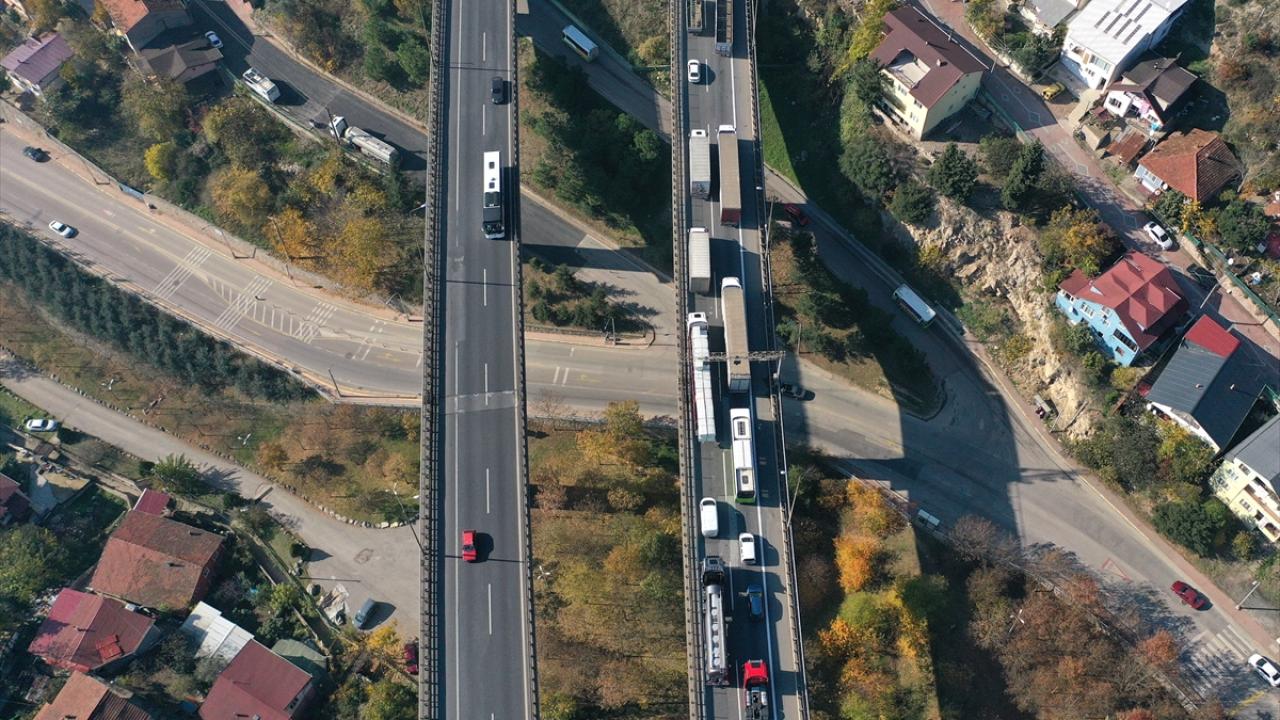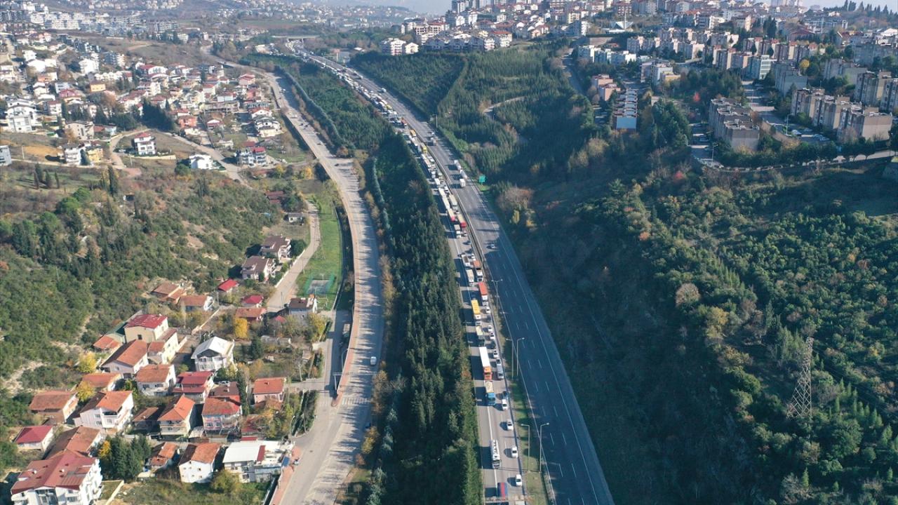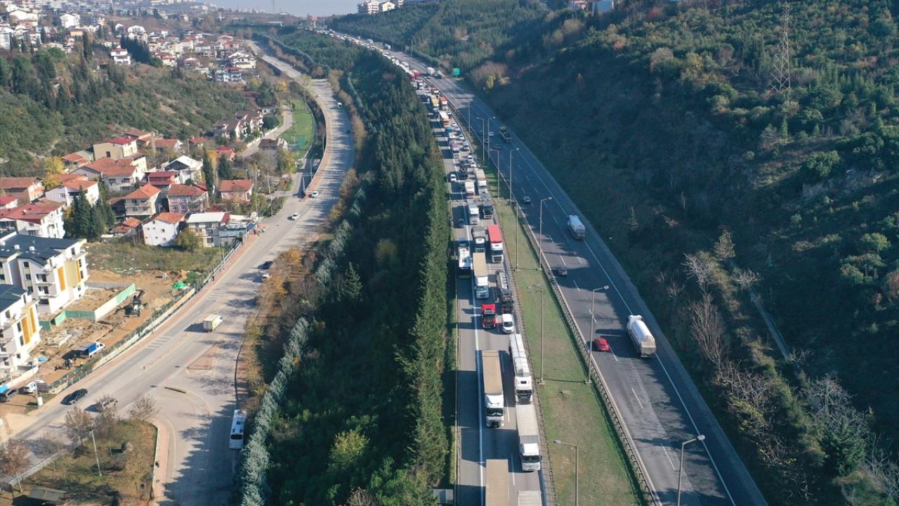 Otoyolun İstanbul istikametinde ulaşımın tek şeritten sağlanması nedeniyle araç kuyruğu oluştu.