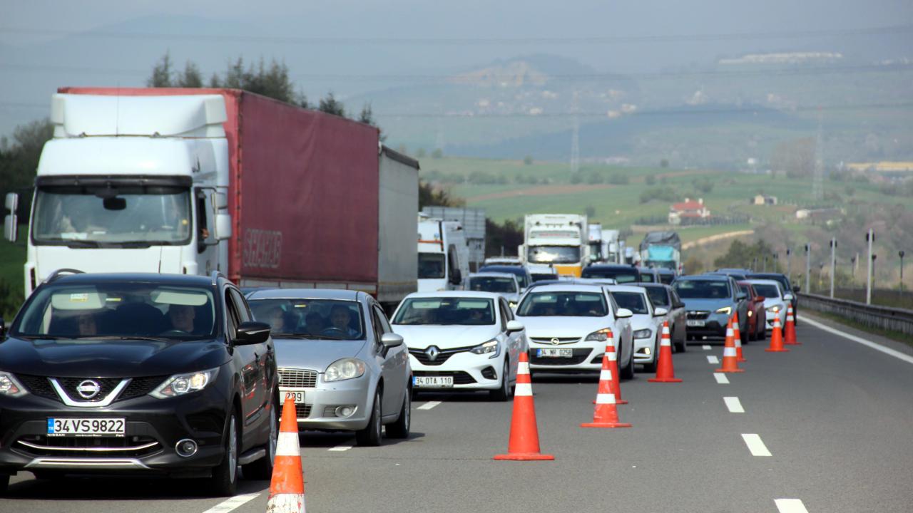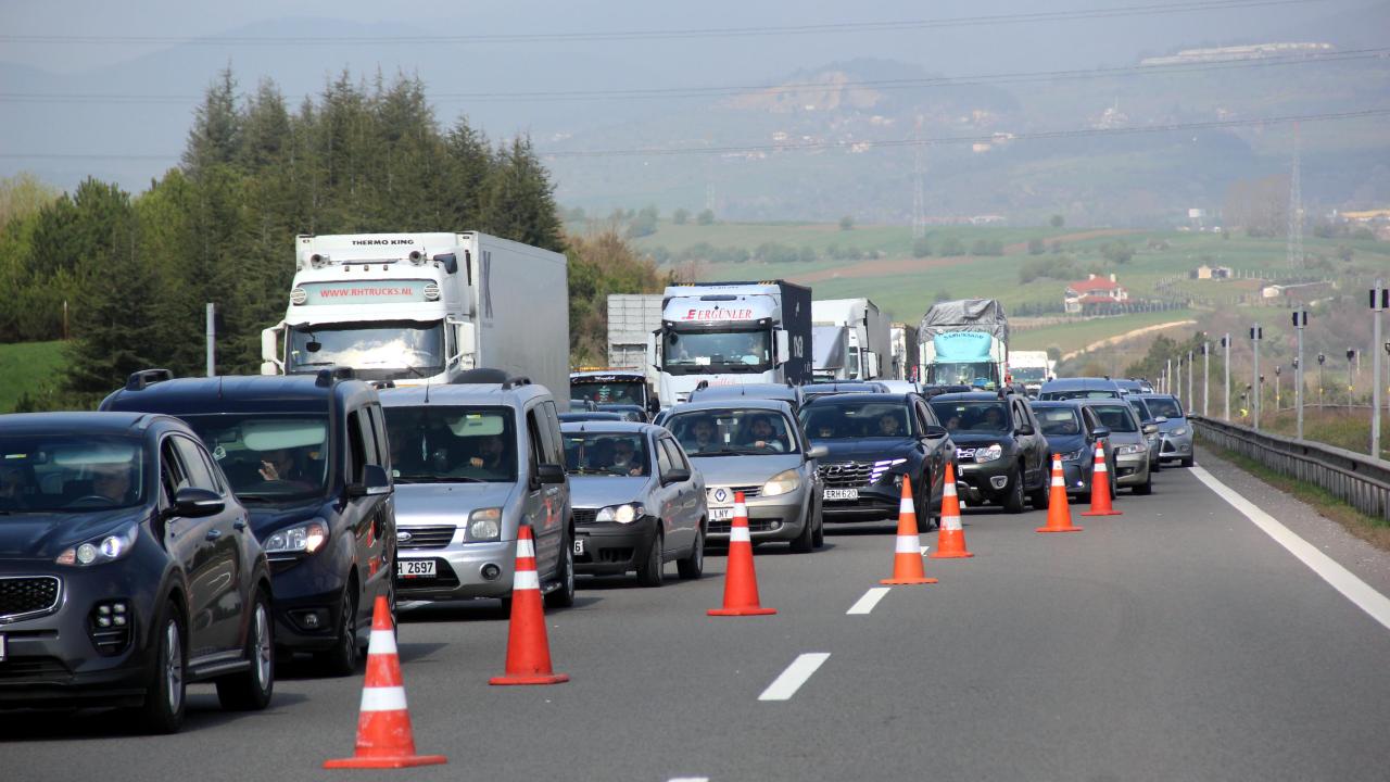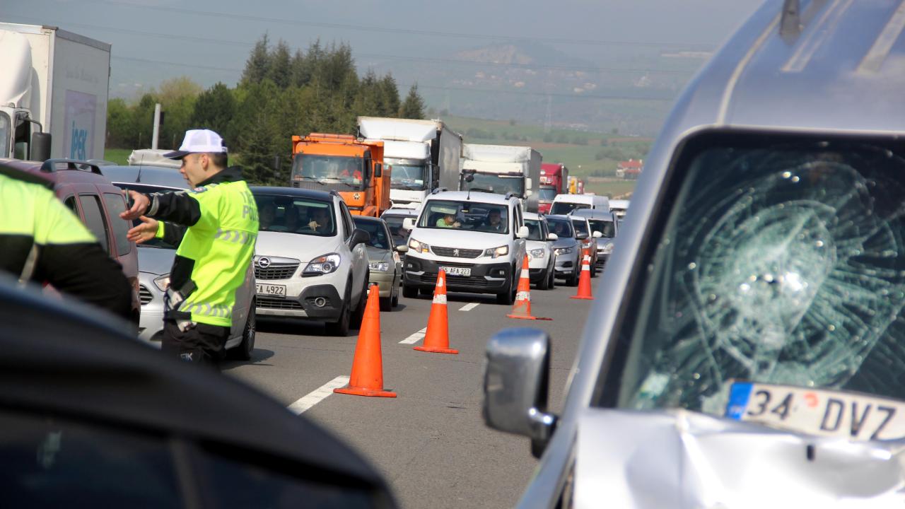 Bayram tatili için yola erken çıkanların oluşturduğu yoğunluk kaza yoğunluğuyla da birleşince 5 kilometrelik araç kuyruğu oluştu.