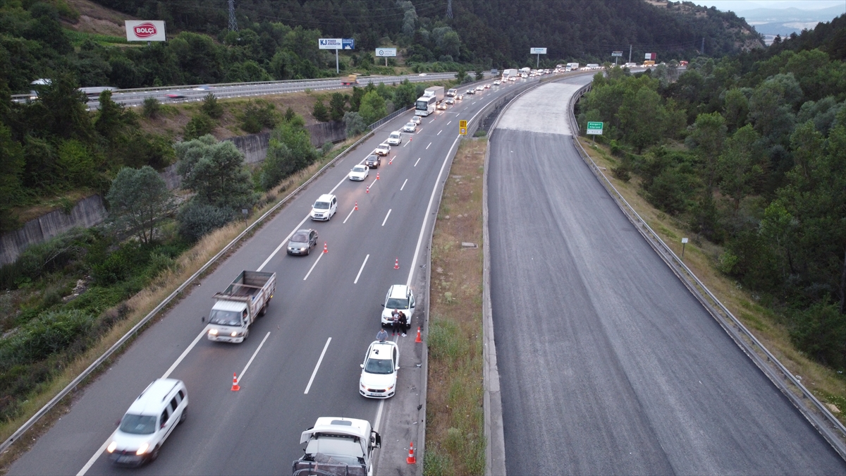 Bu yöndeki araçlar Yeniçağa Kavşağı`ndan D-100 kara yoluna yönlendirildi. Tırlardan birinin bariyerleri aşarak geçtiği Ankara yönünde de trafik tek şeritten sağlandı.