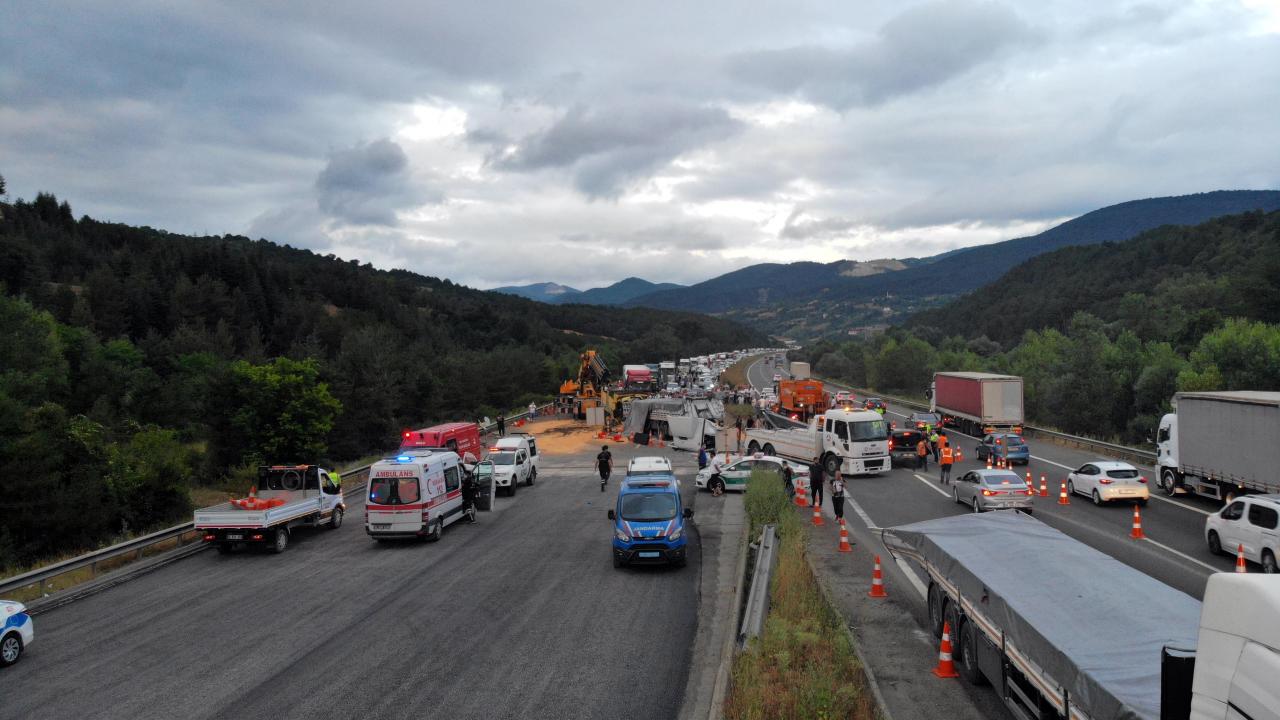 Bolu'da Anadolu Otoyolu'nda 3 tır ile 1 kamyonun karıştığı zincirleme trafik kazasında 1 kişi yaşamını yitirdi, 2 kişi yaralandı. Kaza nedeniyle otoyolun İstanbul istikameti ulaşıma kapanırken, kilometrelerce araç kuyruğu oluştu.