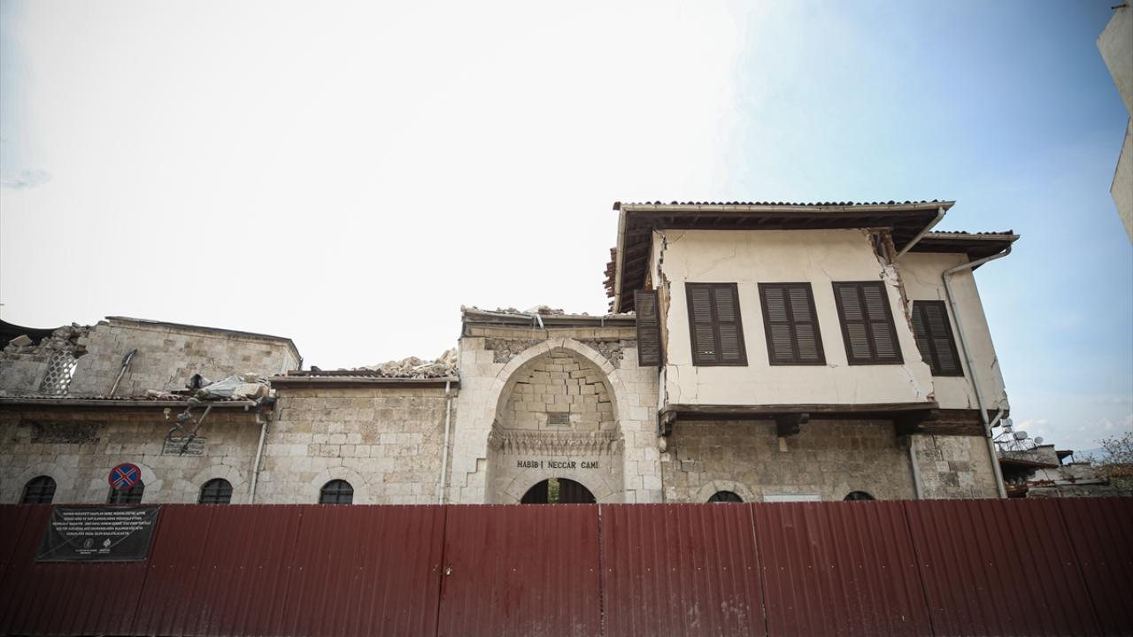 Kazı başkanı Muhammet Arslan, depremlerin kentin simgelerinden Habib-i Neccar Camii`nde büyük yıkıma yol açtığını söyleyerek, "Maalesef harimin üzerini kapatan üst örtüsü tamamen içeriye göçmüş, son cemaat yeri yıkılmış, minaresi de tamamen yıkılarak avluyu enkaz haline getirmiş" dedi.